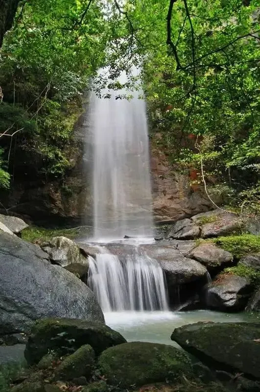 相思谷的相思瀑布引用相思;瀑布从上而下的流水就像是古时女子的面纱,远看朦胧神秘,近看阴柔清风。