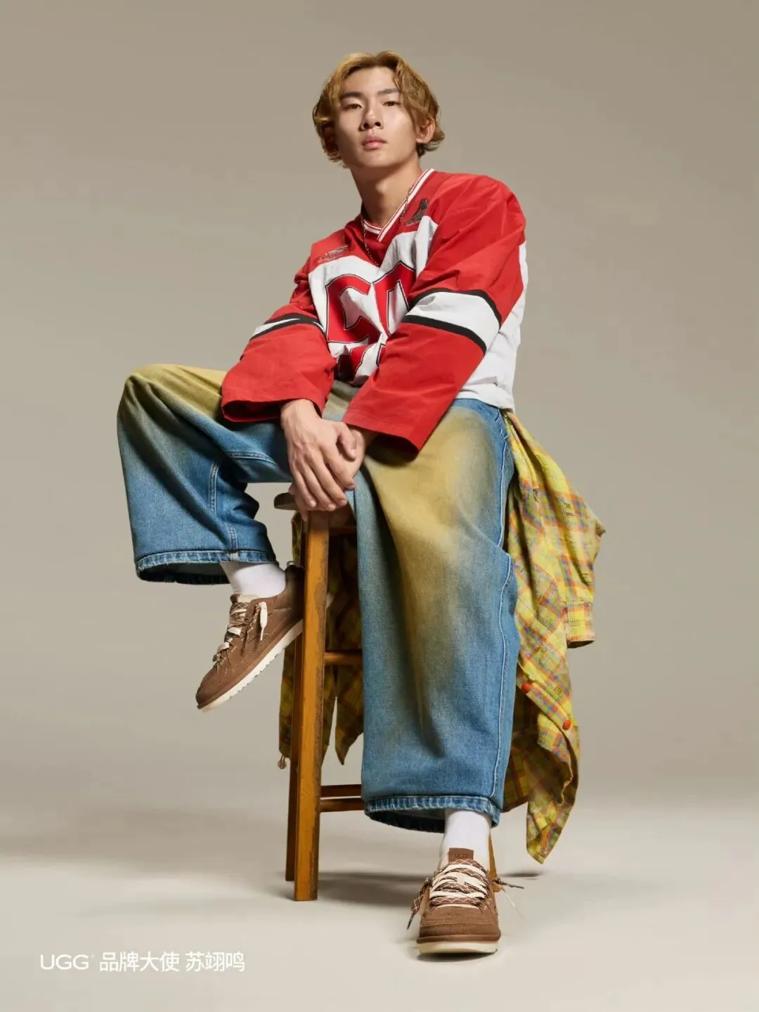 赛场之外,苏翊鸣的时尚基因同样醒目。他擅于在运动与潮流之间自在游走:宽松廓形与工装裤勾勒出少年特有的松弛感,卫衣搭配金属项链则叠出一份不羁的精致。他成功将体育精神化为外在的风格语言,让自信、活力与态度,成为另一种赛场的延续。