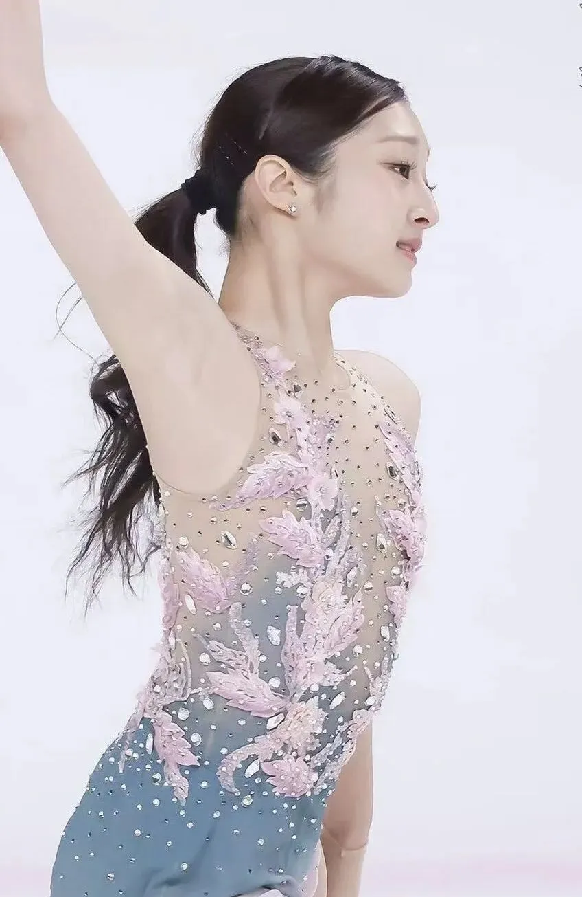 这种近乎不费力的“淡雅风”,并非只存在于冰面。那是一种稳定而清透的个人气质——不张扬,却自带分寸感;不刻意强调力量,却在克制中显出锋芒。少女的清甜与运动员的利落在她身上自然并存。