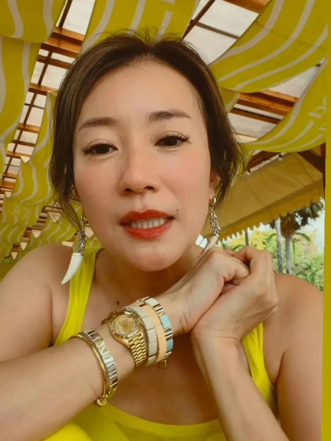 除了全家福外,楊張新悅也有分享獨照,身穿黃色透視背心的她,大曬健康性感,四肢纖幼如少女,一點「師奶味」都沒有。她更拍片與粉絲拜年:「恭喜發財,馬年行大運!聽講今年就唔好著咁多紅,因為火馬已經火,所以我帶俾大家金,金銀滿屋、家肥屋潤,大家最緊要係想要嗰樣,得到嗰樣」。