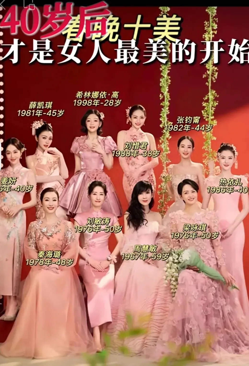 周慧敏、刘敏涛、梁咏琪等十位女神同台,身着粉裙,在翠绿的舞台上绽放光彩,一个个状态好到让人不敢相信😱