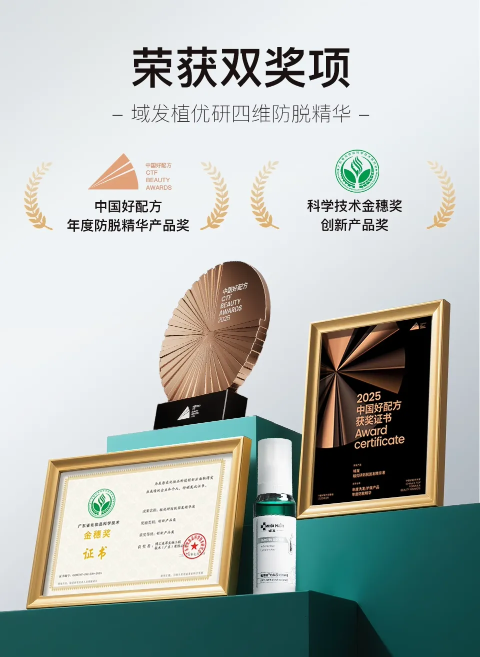 不仅持证防脱,拿下了“中国好配方年度大奖”,还得到了著名三甲皮肤🧑‍⚕️的认可