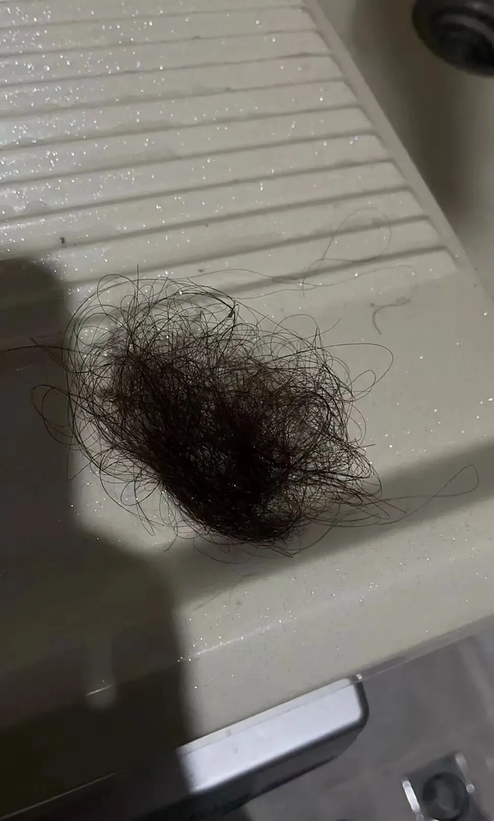 👩@秋秋,新手妈妈面临产后脱发真的很惶恐。我洗个头,能把地漏都堵住!感受下我清理出来的头发,这只是洗一次头掉的……