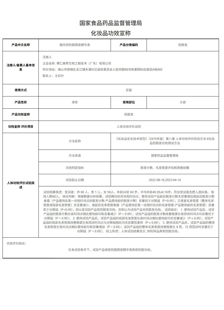 域发防脱精华经人体功效检测,结果显示:34 位消费者连续使用产品 4 周后,局部毛发密度净改变均值 4 周约为 18.91%,估算得出全头约增加 18910 根(生长实际效果因人而异)