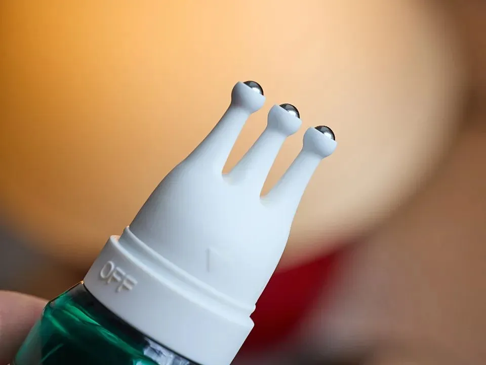 它的瓶口是精华液 + 上药器 + 滚珠按摩头的一体设计,直达发根,避免浪费的同时,又灵活便携。出差,旅游,随手揣包里,不会耽误咱养发。