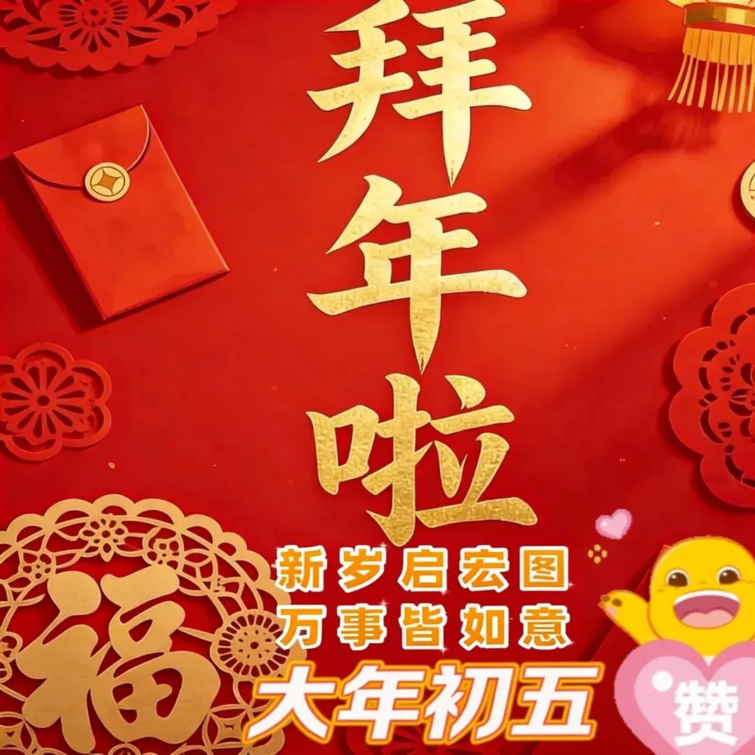 当前位置:首页>美女资讯>2026年2月21日大年初五吉祥早安图片,正月初五拜年朋友圈祝福话!