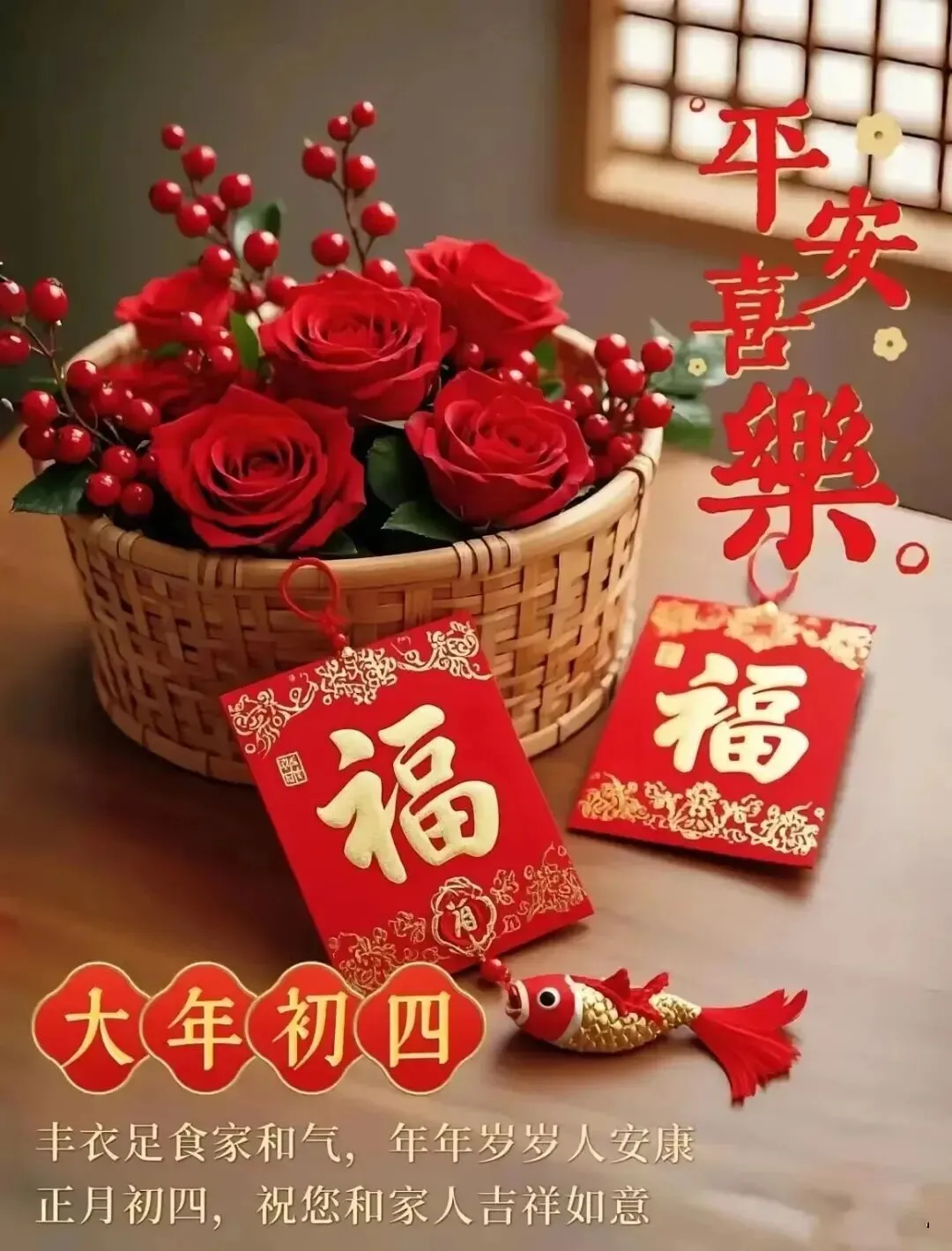 初五吉时窗扉开,财神携宝入门来。金山银山搬进屋,霉运晦气全抛开。愿你日日有进账,年年有余笑颜开,夫妻恩爱子女孝,福寿双全春常在。