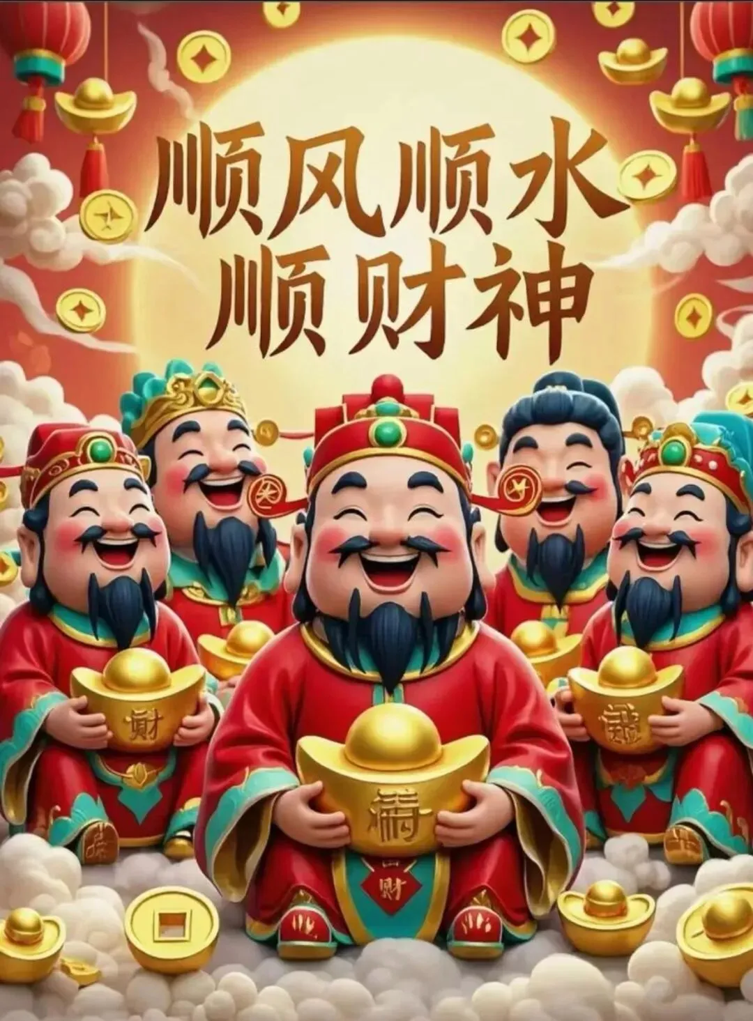 2. 初五迎财神,瑞气满乾坤。愿财星高照,护佑您新的一年,投资有道,事业顺心,钱包鼓鼓,底气足足,日子越过越殷实。