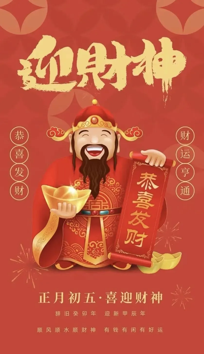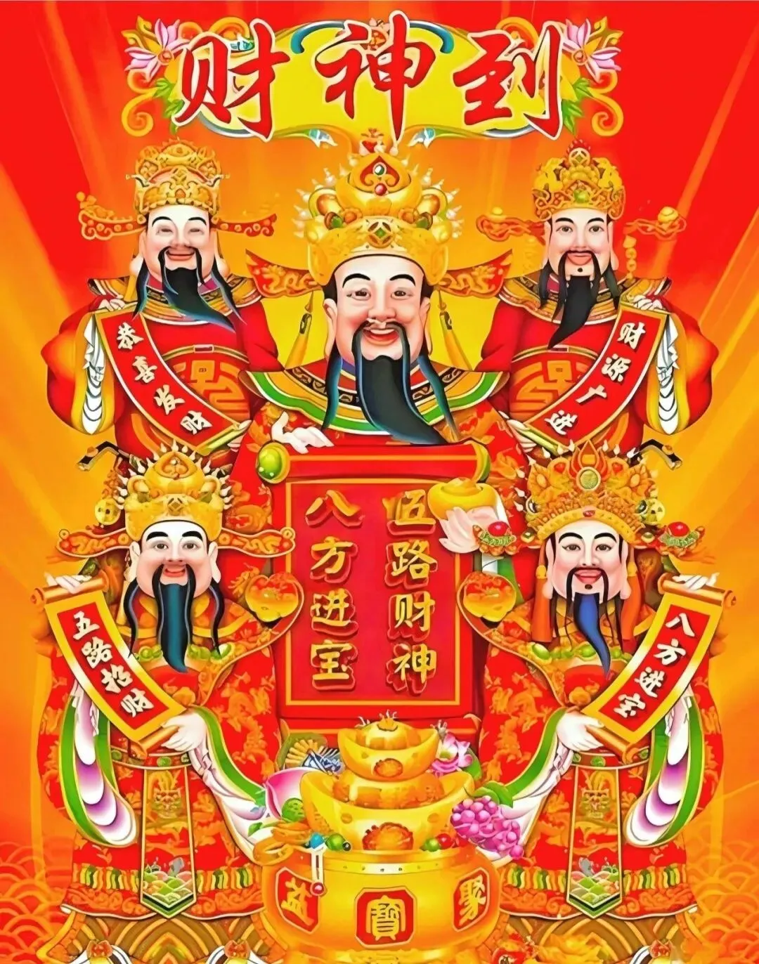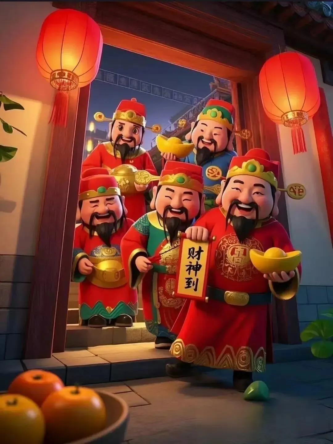 5. 财神爷踏着周六的晨光,带着五路福运敲开家门啦🚪 东路招财使者引路,西路纳珍天尊送宝,南路利市仙官赐福,北路纳库仙官保财,中路武财神镇宅⚔️ 愿你今日起,财源滚滚如江河,日子滚烫如烈火,周末快乐,财运亨通💰🧨🍊