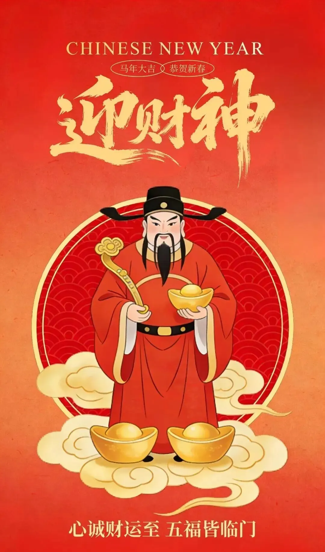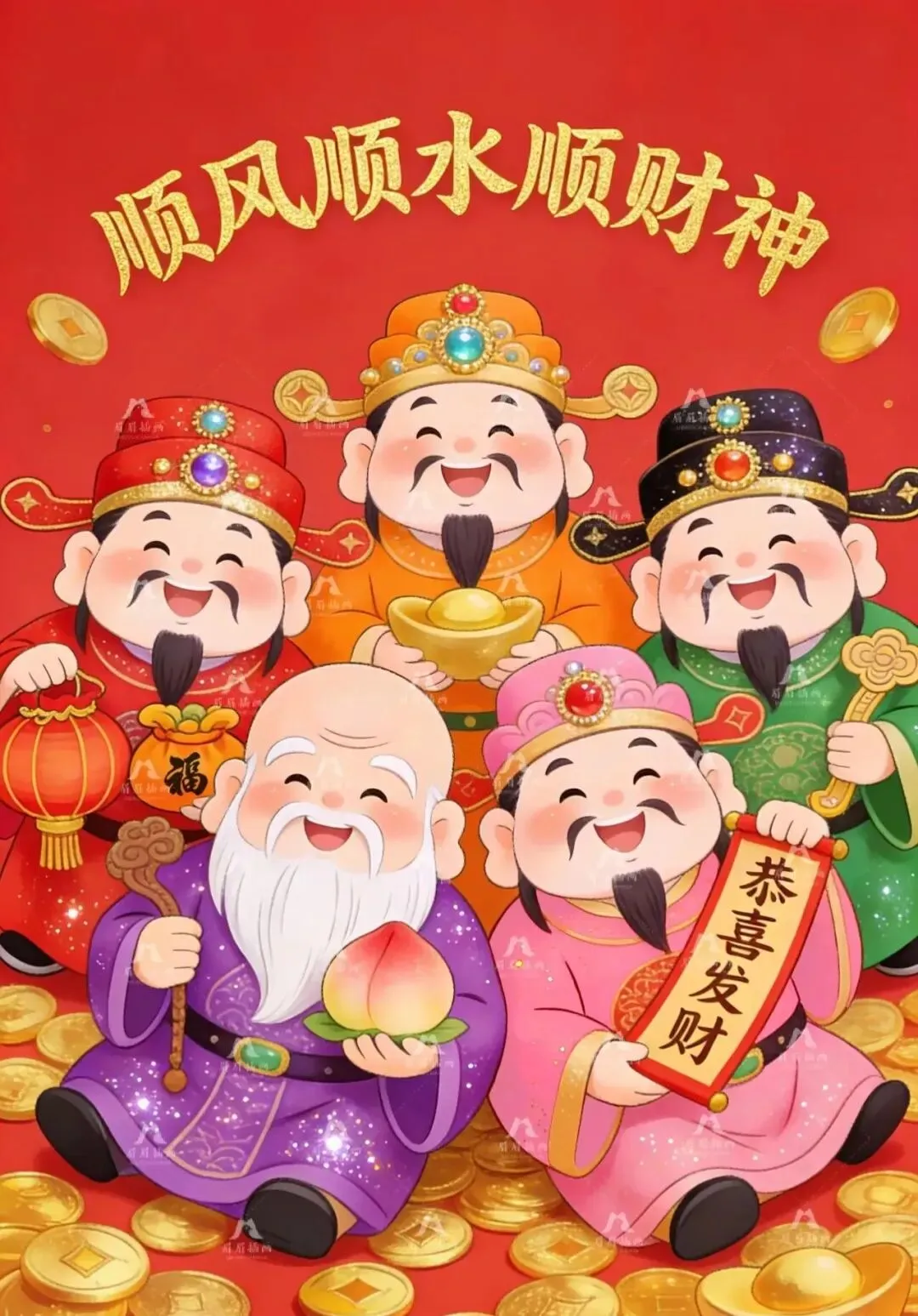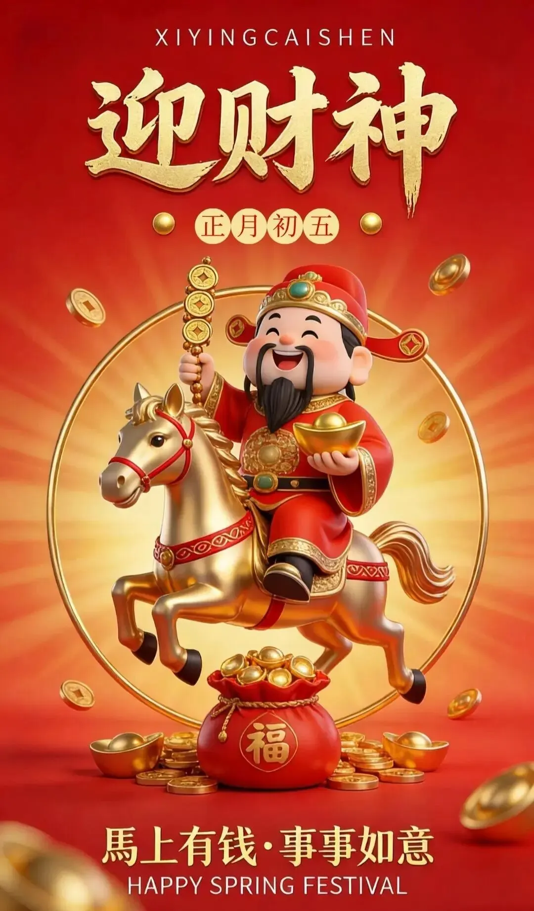 5. 财神爷踏着周六的晨光,带着五路福运敲开家门啦🚪 东路招财使者引路,西路纳珍天尊送宝,南路利市仙官赐福,北路纳库仙官保财,中路武财神镇宅⚔️ 愿你今日起,财源滚滚如江河,日子滚烫如烈火,周末快乐,财运亨通💰🧨🍊