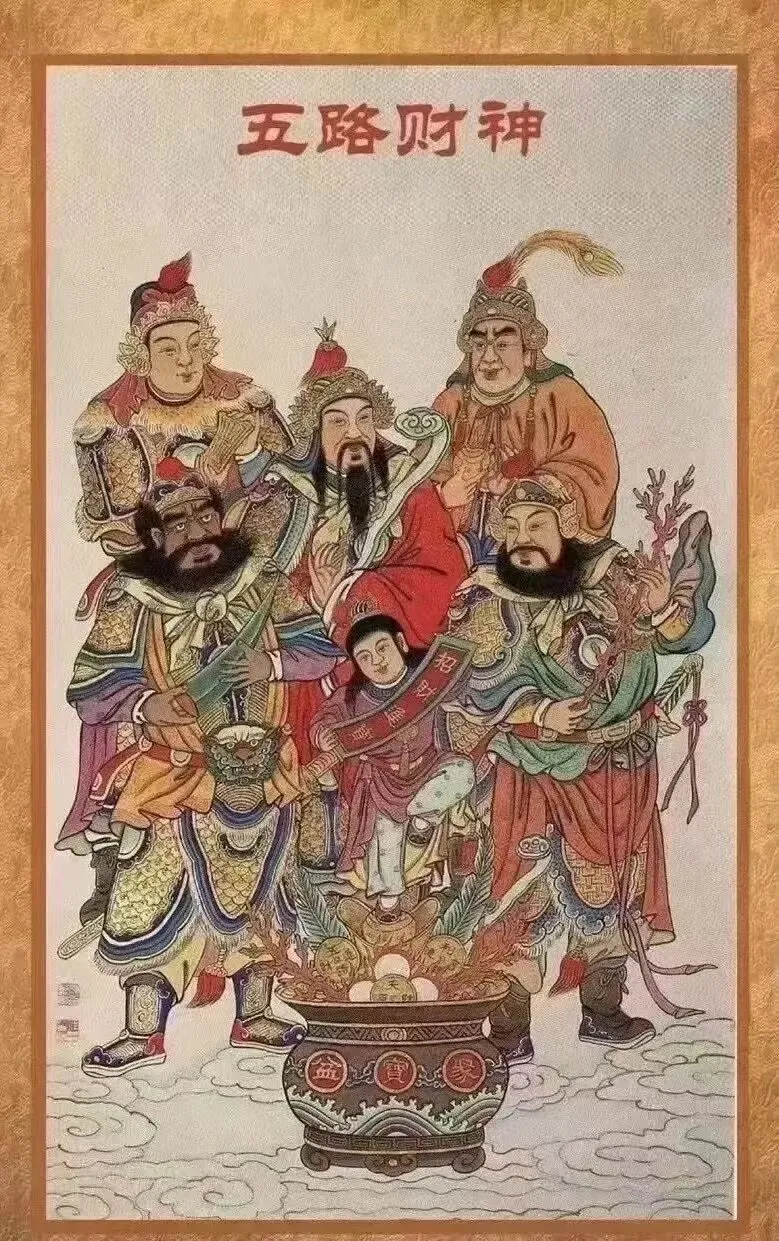 因此,财神在中国人的观念谱系中,位置极重。且财神并非一尊一名,而是一个复杂而多元的神祇群像:有武财神赵公明、关公、柴荣,以威严与忠义镇守财路;有文财神比干、范蠡、李诡祖,以清正与智慧象征生财有道。更有五圣、财公财母、和合二仙、利市仙官、文昌帝君、活财神沈万三等,各具来历与传说。不同地域、不同阶层,信奉的对象未必相同,但对“安身立命”的期许,却殊途同归。