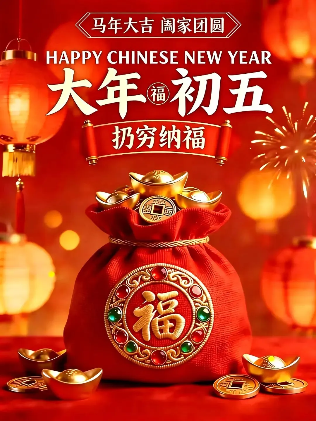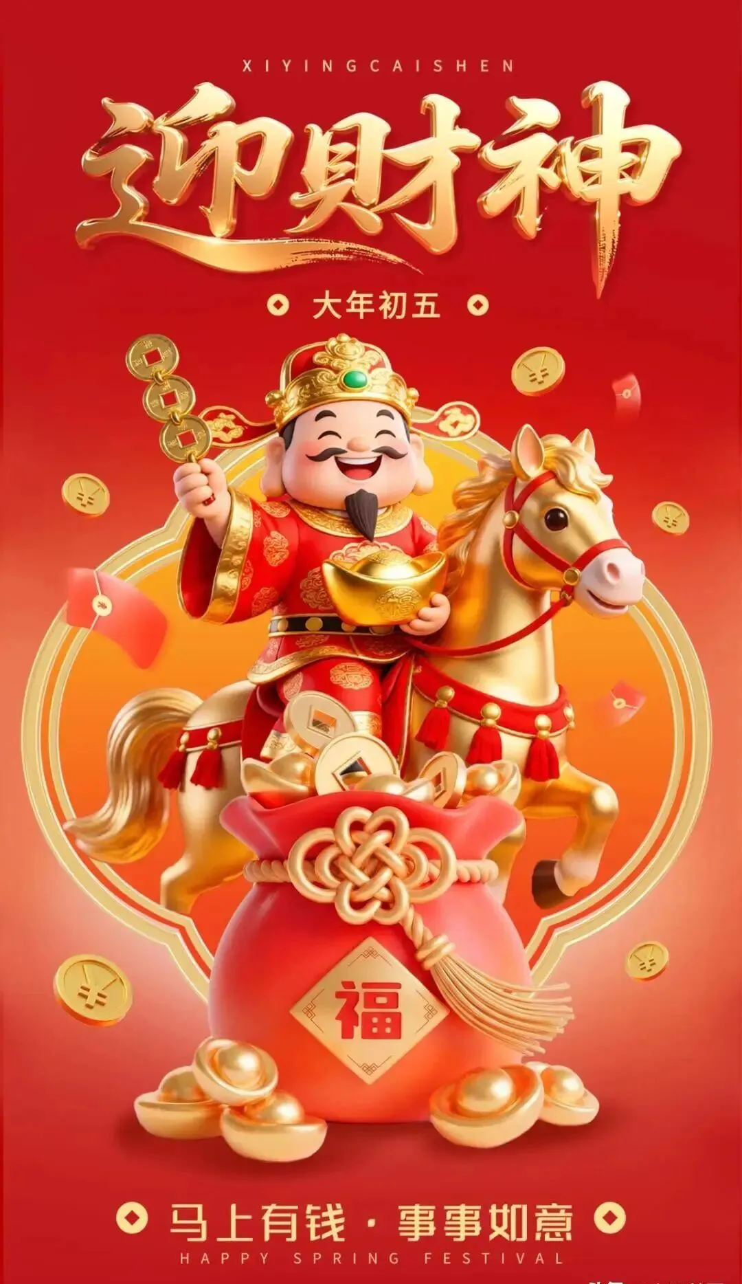当前位置:首页>美女资讯>大年初五财神日图片祝福文案,马年正月初五快乐