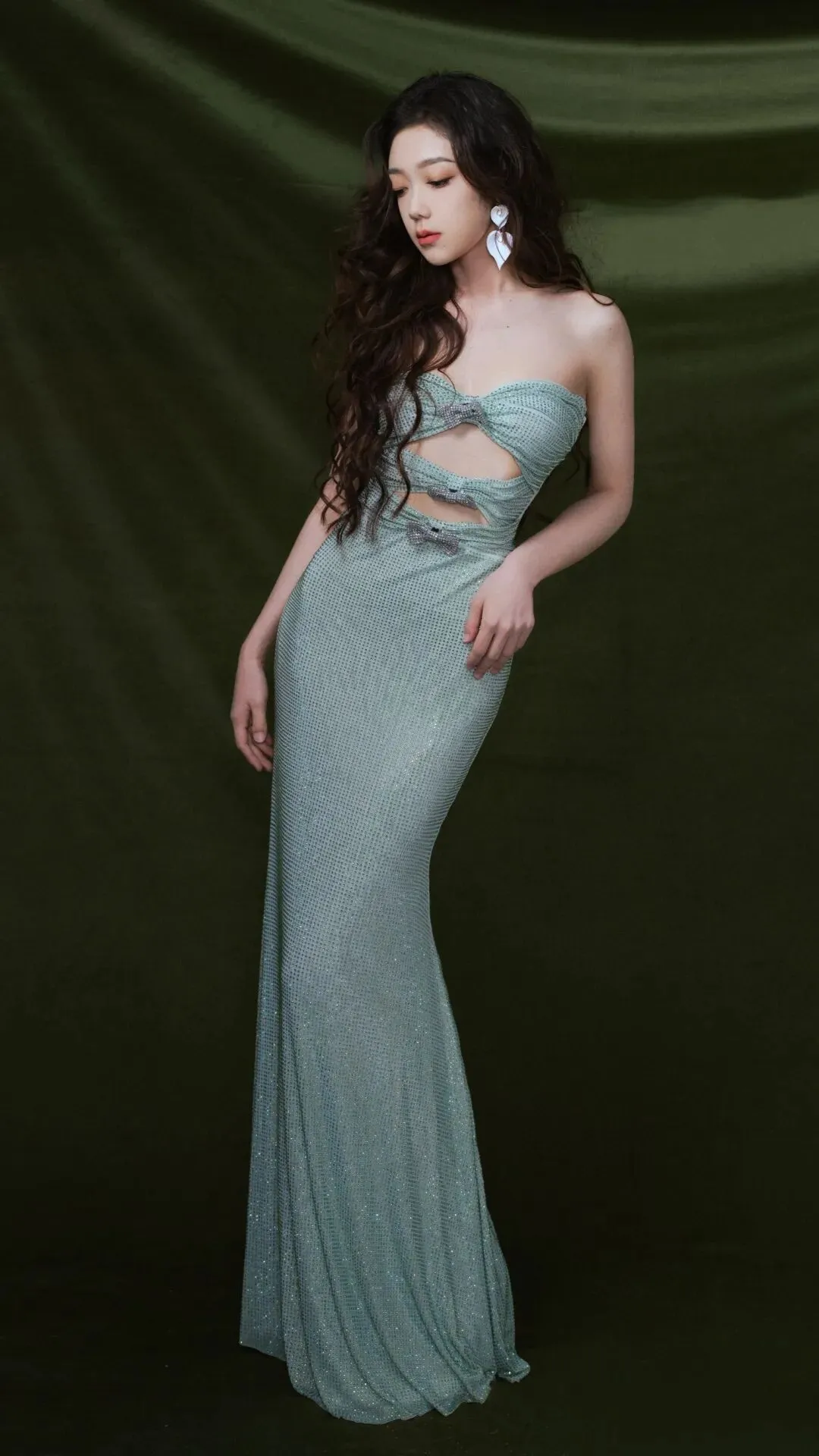 当黑色绸缎沿着脊柱蜿蜒而下,腰侧的蝴蝶结或开叉设计在转身间惊鸿一瞥,让留白处生出无限遐想,这正是她独有的“矛盾美学”:用克制铺陈,却让每一寸肌肤都诉说着故事。