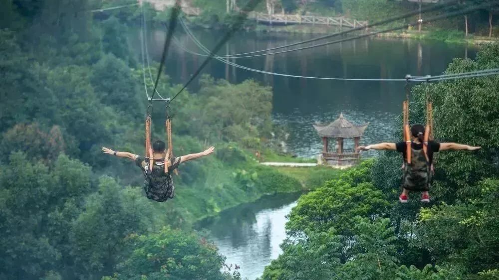身心畅玩,坐上滑索将烦恼抛掷九霄云外。