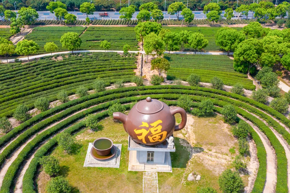 天福茶园依山而建,一层层的茶田从山头一直铺到山脚,层与层之间间隔分明,布局规整。从远处看,光是漫山规整的茶田就是一道吸引人的光景。走入茶田当中,同一层的茶叶都被修剪为同一高度,更能体现茶田的工整。打卡世界最大的茶博物院5大展馆8大景观,一饱眼福品茶、看表演、游园……赏人文、观山水,一举两得