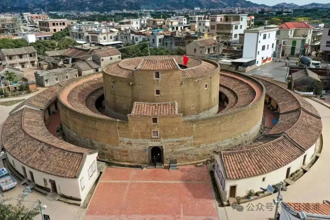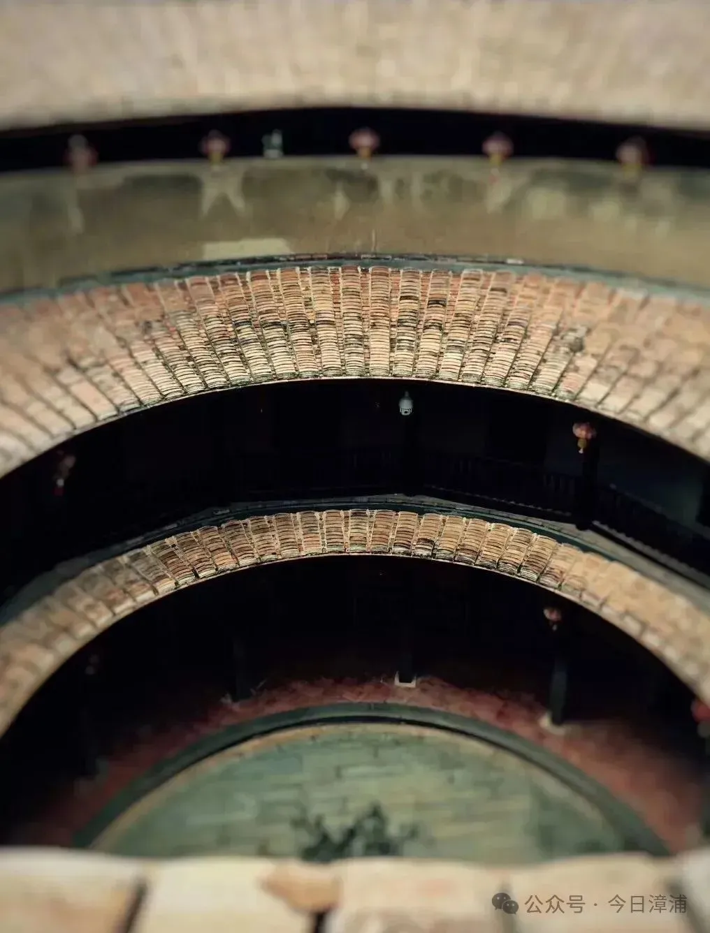 完整的漳浦土楼并不多,大多散落于各处,仿佛在躲避世俗的喧嚣。而锦江楼却如同一只金鸡,独立在这座古城之上,昂首挺立,俯瞰着四方的风景。它的独特之处在于,那些永定、南靖、平和等地的圆楼,都是外高内低,而锦江楼则恰好相反,从外到内一环比一环高,远远望去,仿佛一座金塔,巍然屹立,展示出一种不凡的气势。