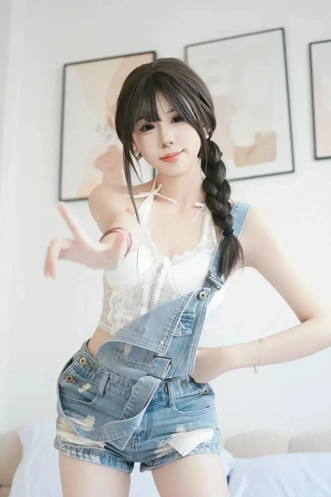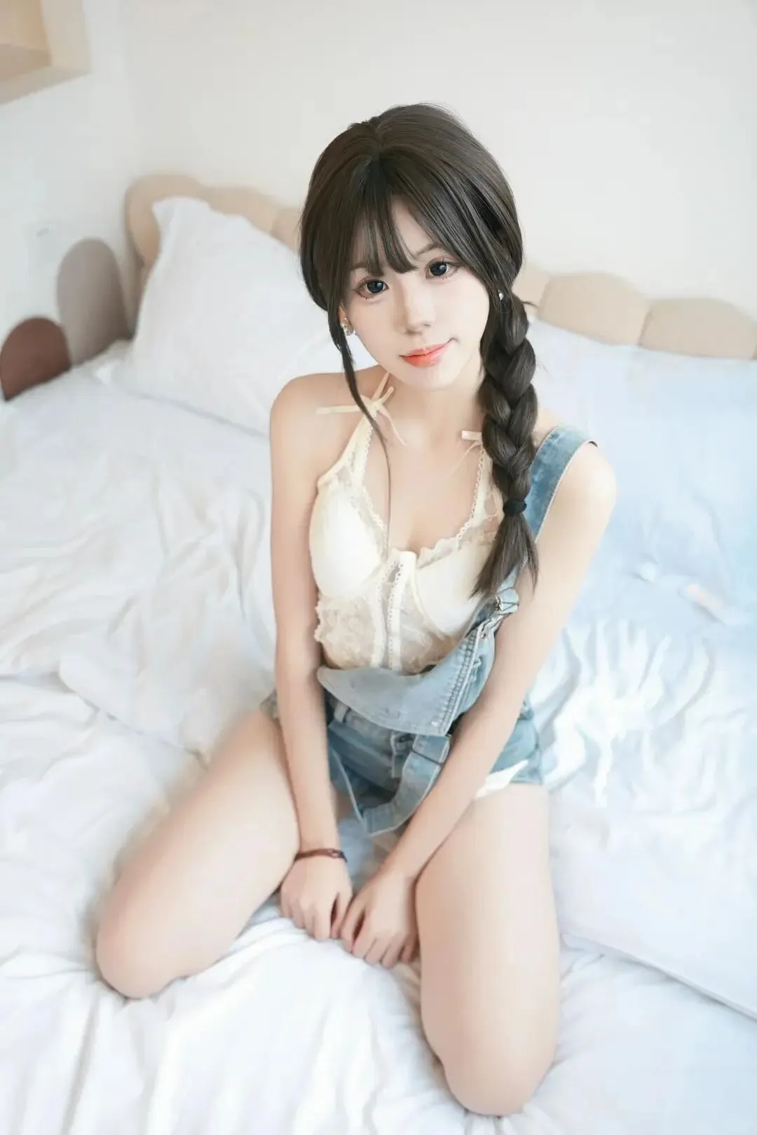 我推开摄影棚的门时,差点和抱着一堆道具的小姑娘撞个满怀。她手里的兔子玩偶“啪嗒”掉在地上,米白色蕾丝吊带裙被蹭得滑下肩窝,露出精致的锁骨和一小片白皙的肩颈,胸前的蕾丝花边勾勒出柔和的曲线,看得我喉结不自觉滚了一下。我弯腰去捡玩偶,抬头撞进她湿漉漉的杏眼,眼尾带着点天然的粉,像沾了桃花蜜,鼻尖小巧挺翘,嘴唇是淡淡的草莓色,软乎乎的像颗糖。她连忙蹲下来抢玩偶,指尖不小心碰到我的手背,温软得像刚出炉的棉花糖,还带着点草莓牛奶的甜香,“对、对不起先生,我太急了”,声音甜得发腻,挠得人心尖发痒。