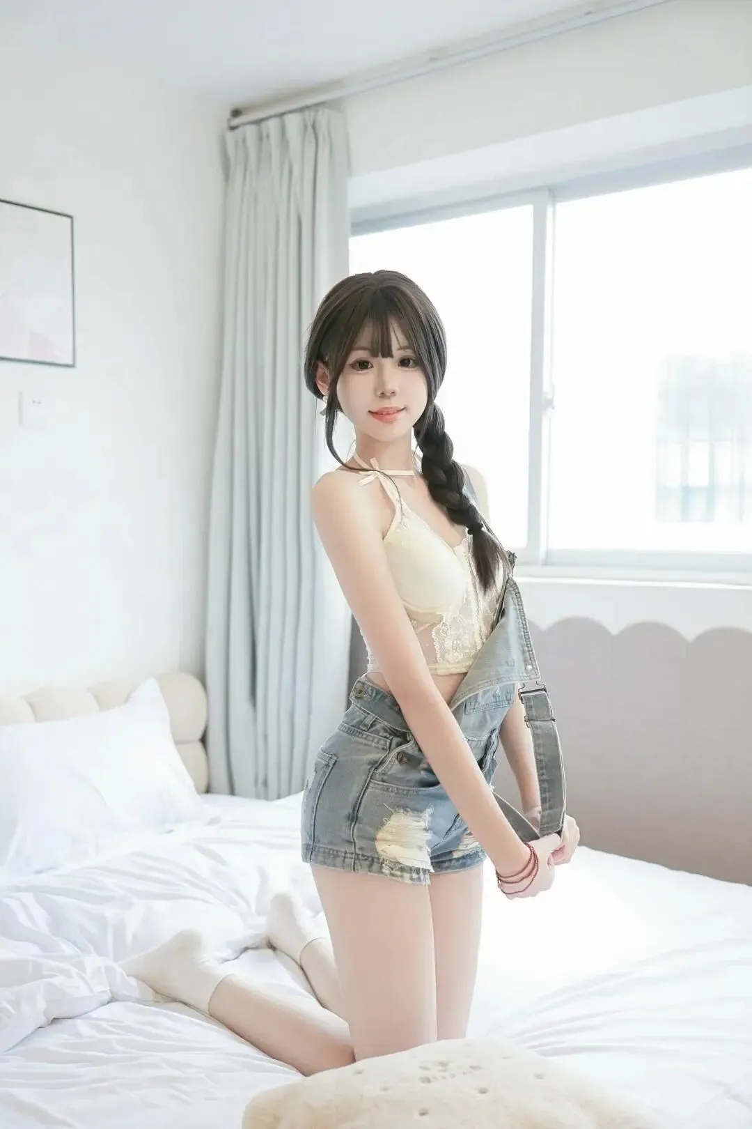 后来才知道她是今天的写真模特苏甜,人如其名,连笑起来都带着化不开的甜。摄影师让她趴在白色丝绒沙发上,裙摆顺着曲线滑到大腿根,露出白皙修长的腿,圆润的臀线在布料下若隐若现,看得我心跳漏了一拍。她对着镜头歪头时,发间的草莓发圈晃来晃去,忽然眼神一转,精准锁定我,嘴角勾起个狡黠的笑,手指轻轻划过自己的唇瓣,那动作又纯又欲,像只勾人的小狐狸。我靠在灯架上,手里的矿泉水瓶都捏变形了,满脑子都是她的脸、她细软的腰、她软乎乎的指尖。