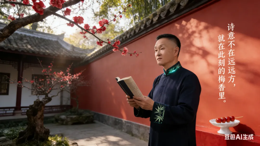[图4;“诗意不在远方,就在此刻的梅香里”]