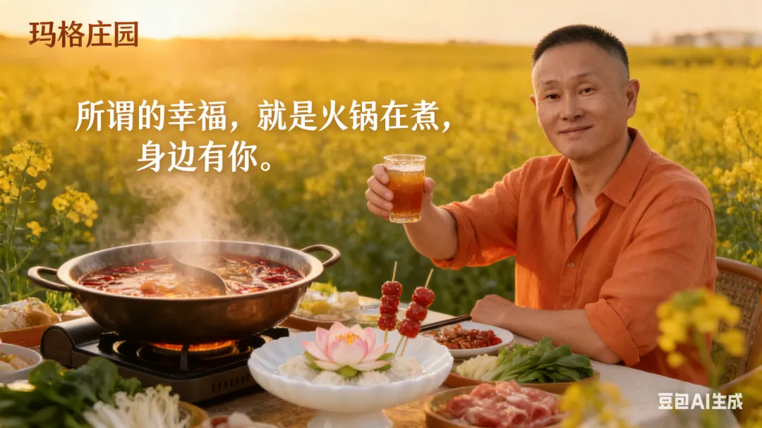 成都三月,14组AI写真定格春韵。以白玉果盘为信物,串起古寺禅音、花海星河、烟火川味、手作传薪。科技融人文,治愈语从蒸汽烟霞中生长——从容观花、静心修竹、举杯共暖、俯身育萌。让古韵与新意相拥,于AI绘就的诗行里,读懂“此心安处,便是吾乡”。