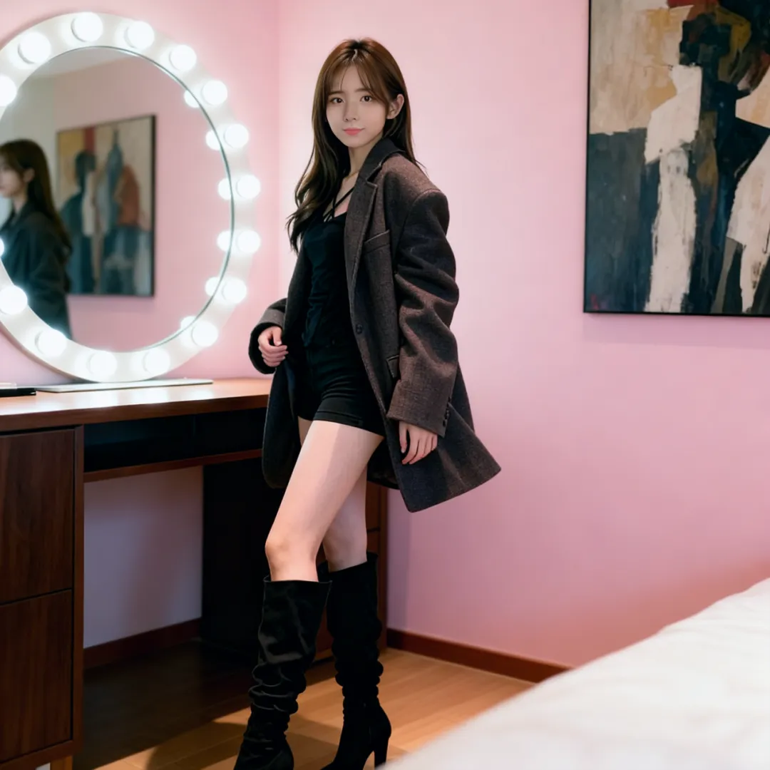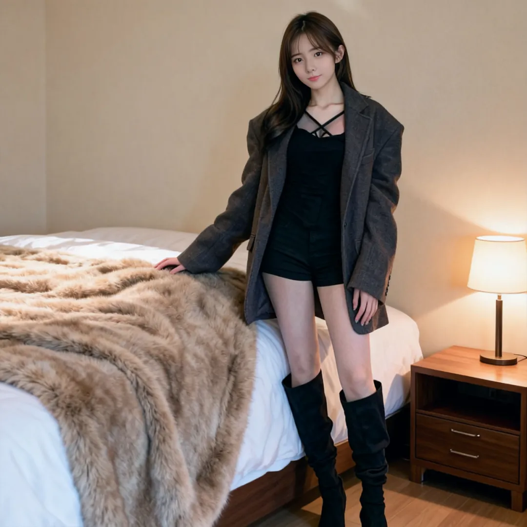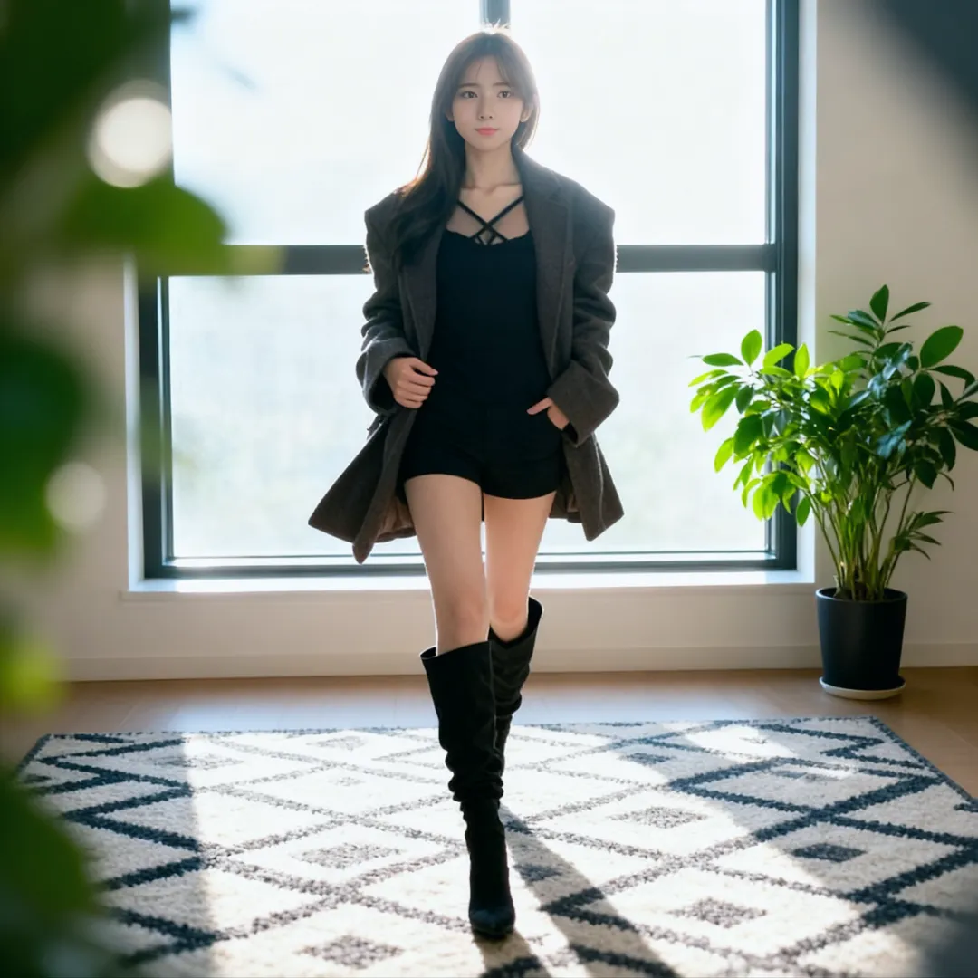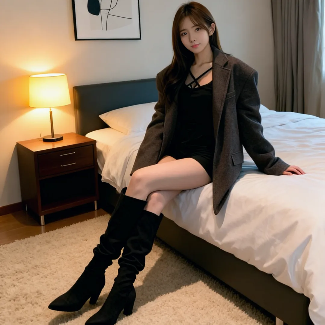 约会夜的卧室总弥漫着玫瑰香气,长靴在此刻化作致命的温柔武器。丝绒材质的过膝靴自带高级感,搭配真丝吊带裙时,建议选择与唇色相近的酒红色,让整体造型充满故事感。若是初次约会,黑色麂皮靴搭配白色衬衫裙更显清新,用腰封强调腰线时,靴筒的褶皱会随着步伐轻轻摇曳,成为行走的荷尔蒙。