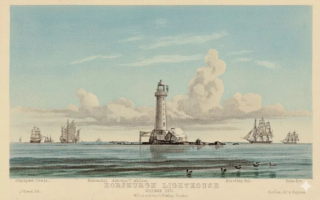 盒子君附图:AI上色插画1851年霍斯堡灯塔建成后