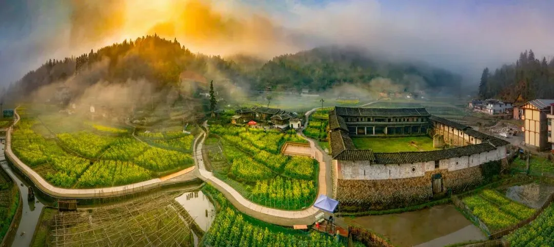 10:30【凤阳堡】(凤阳堡,建于乾隆年间,矗立于一片稻田之中。因该堡涂氏先祖自安徽凤阳迁徙来此,所以将该堡名名为凤阳堡。该堡现仅存四边畅通的跑马道与中央宽阔的超大内空坪,据说可以容纳千余人)。【岱山堂】—创业维艰 (据说五百年前,上丰的启房君房已到济阳村开发,并繁衍了好几代,而历房的子孙涂轸九机缘巧合下到济中并开基岱山堂祖祠。