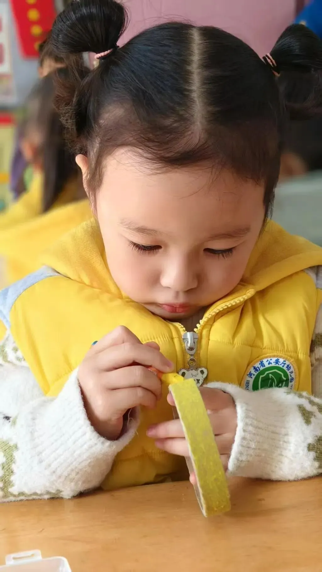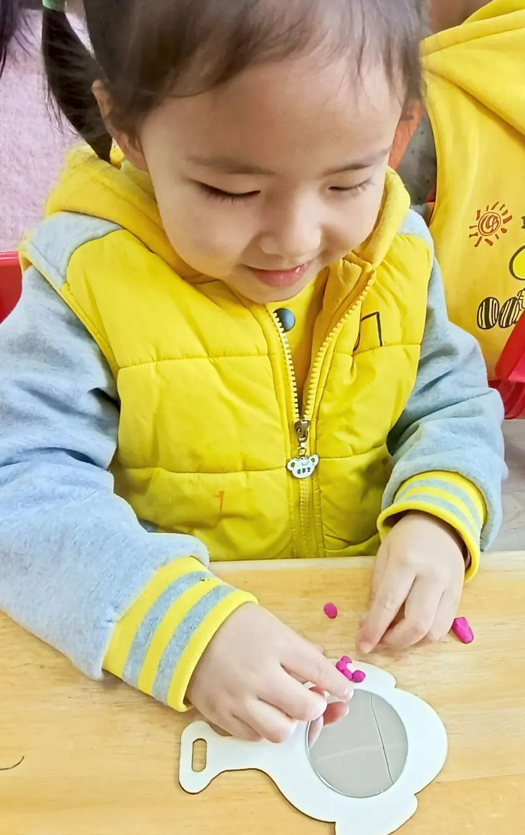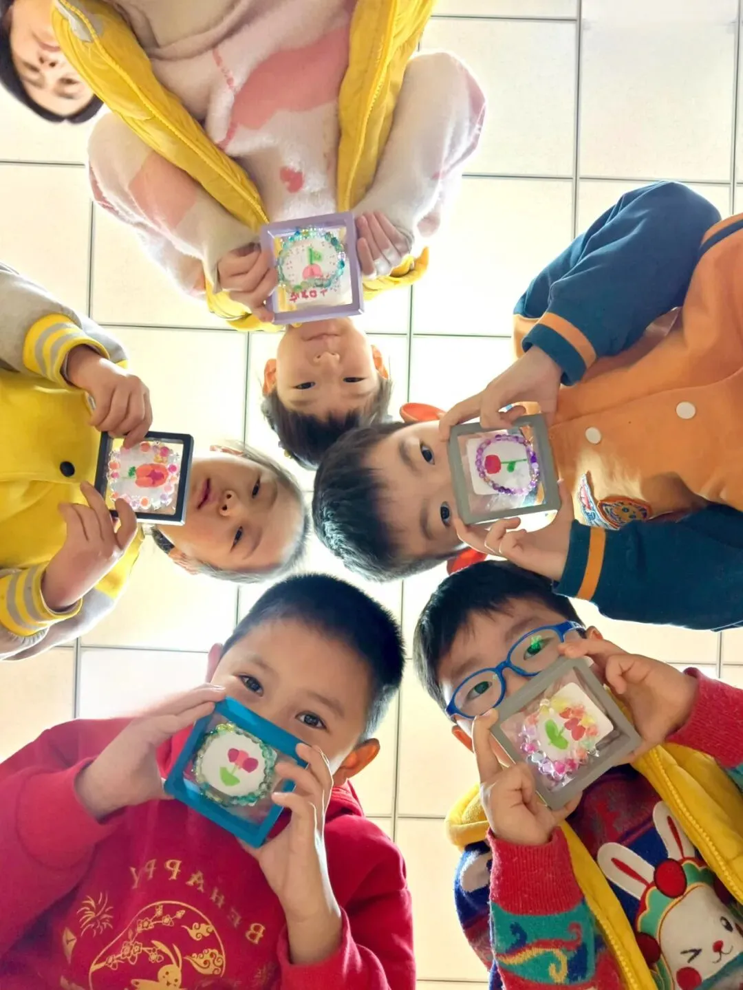 在孩子们纯真的心底,藏着个美好的期许:送一面有魔力的镜子,让“她”成为世间最美的人。怀揣这份心愿,孩子们兴致勃勃地行动起来,瞧!他们眼神专注、神情认真,小手灵活运用团、搓、捏、揉的技巧,全神贯注塑造着每一处细节。相信“她”接过这份满载童真与爱的礼物时,定会映出世间最美的笑容。