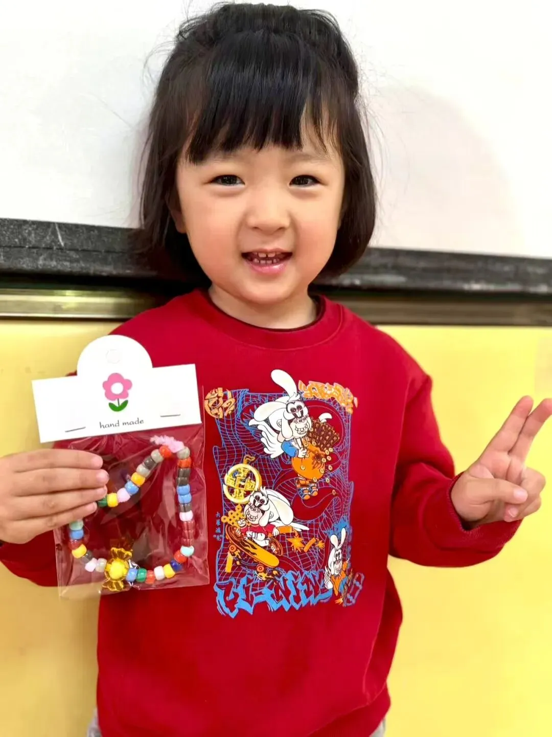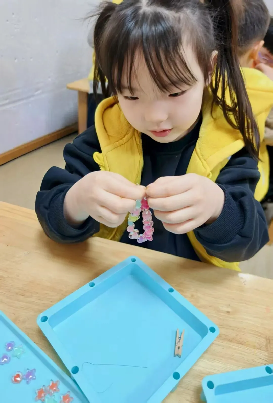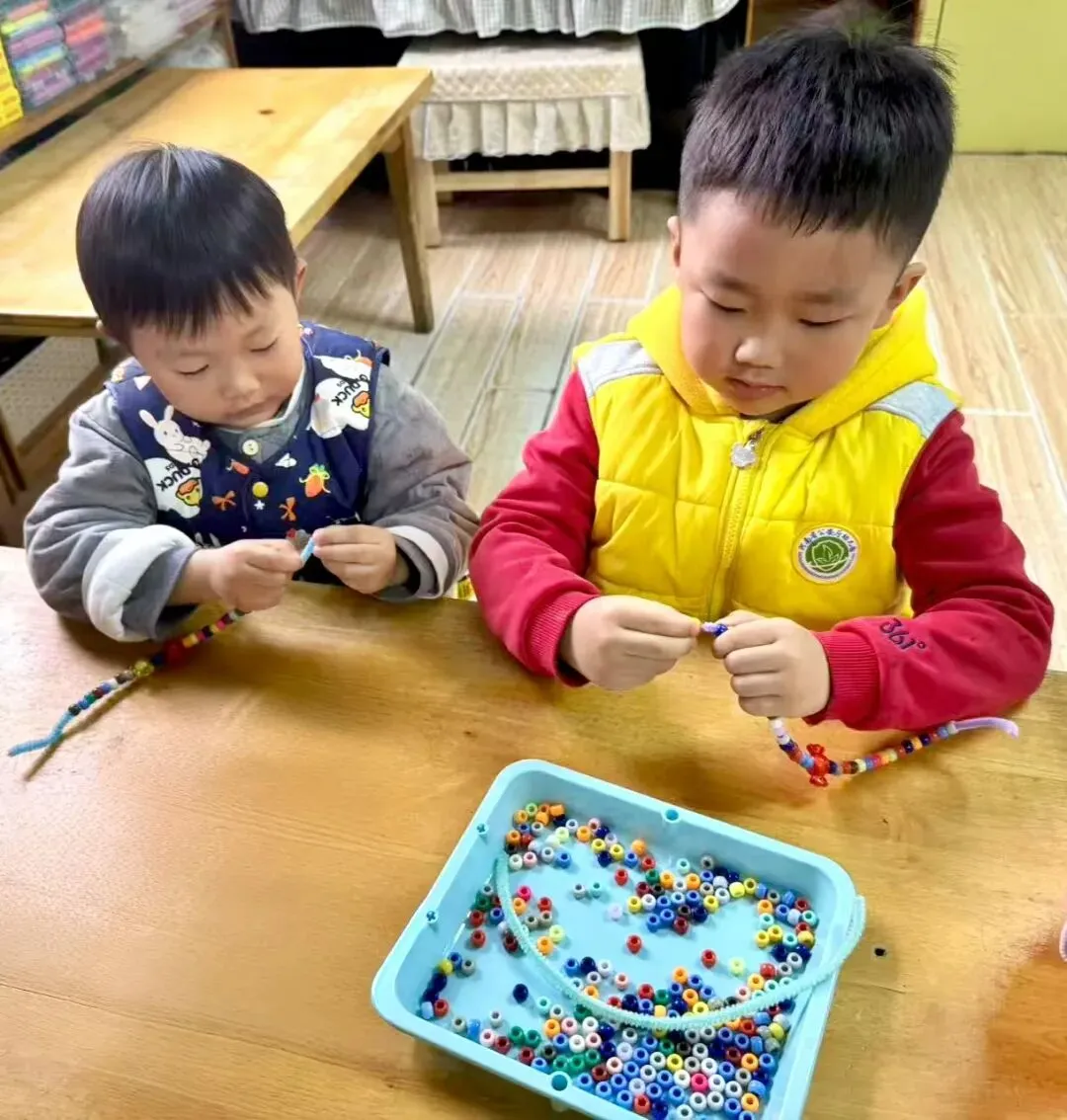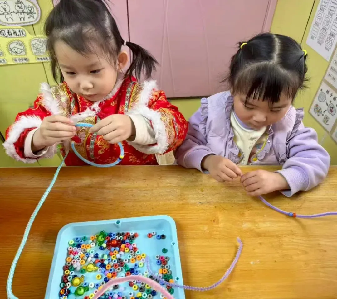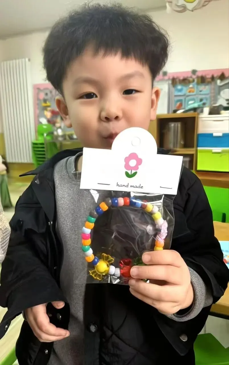 甜蜜的祝福如潺潺溪流,在心间满满流淌。瞧!孩子们的目光紧紧锁定在手中的材料上,小手灵动又熟练地拈线串珠、组合排列,每一处精心的设计、每一次细致的调整,都蕴藏着纯真又浓厚的爱意,在这温情暖意的气氛中,一颗颗感恩的种子,不知不觉破土发芽,慢慢茁壮成长。
