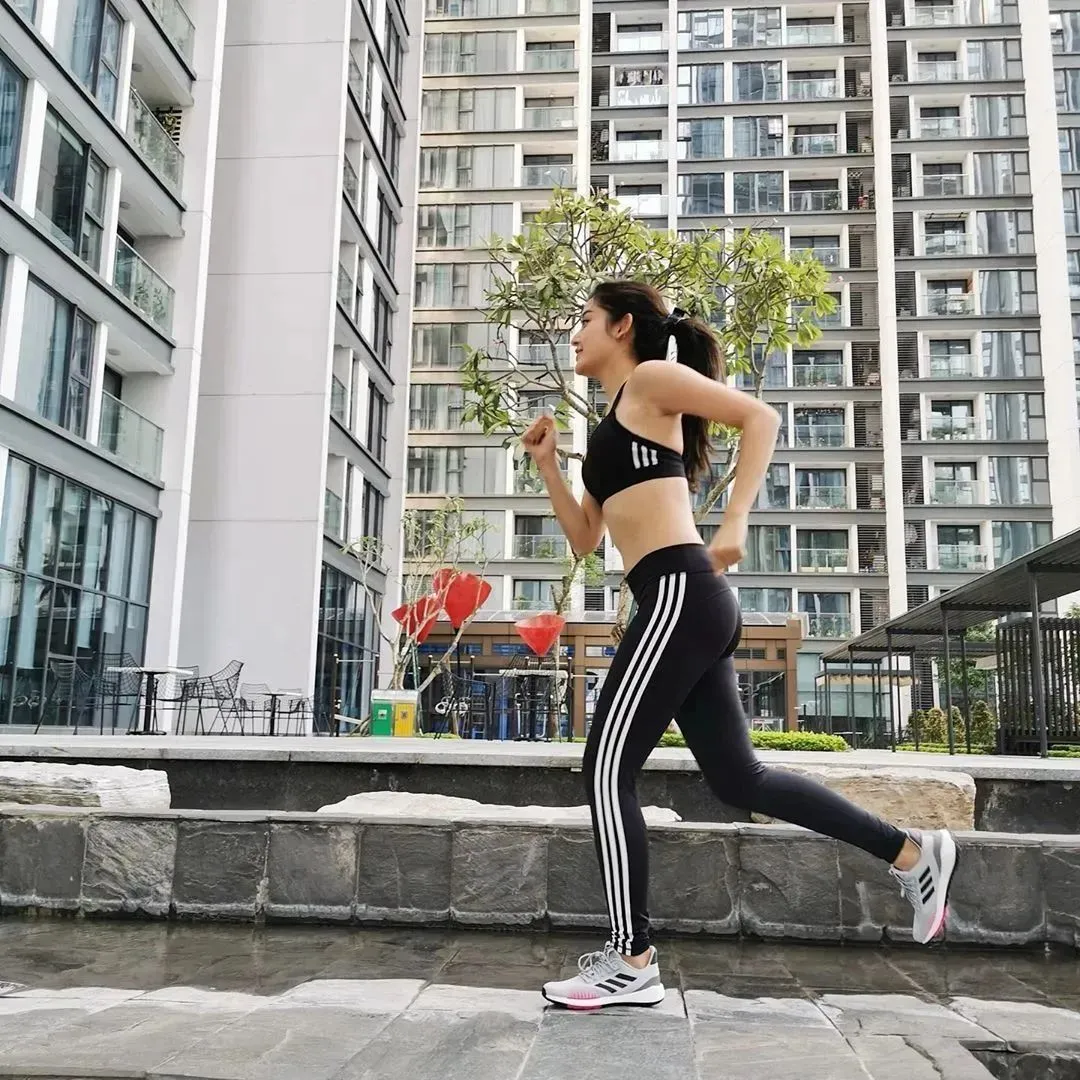 跑完步的她非常重视之后的拉伸