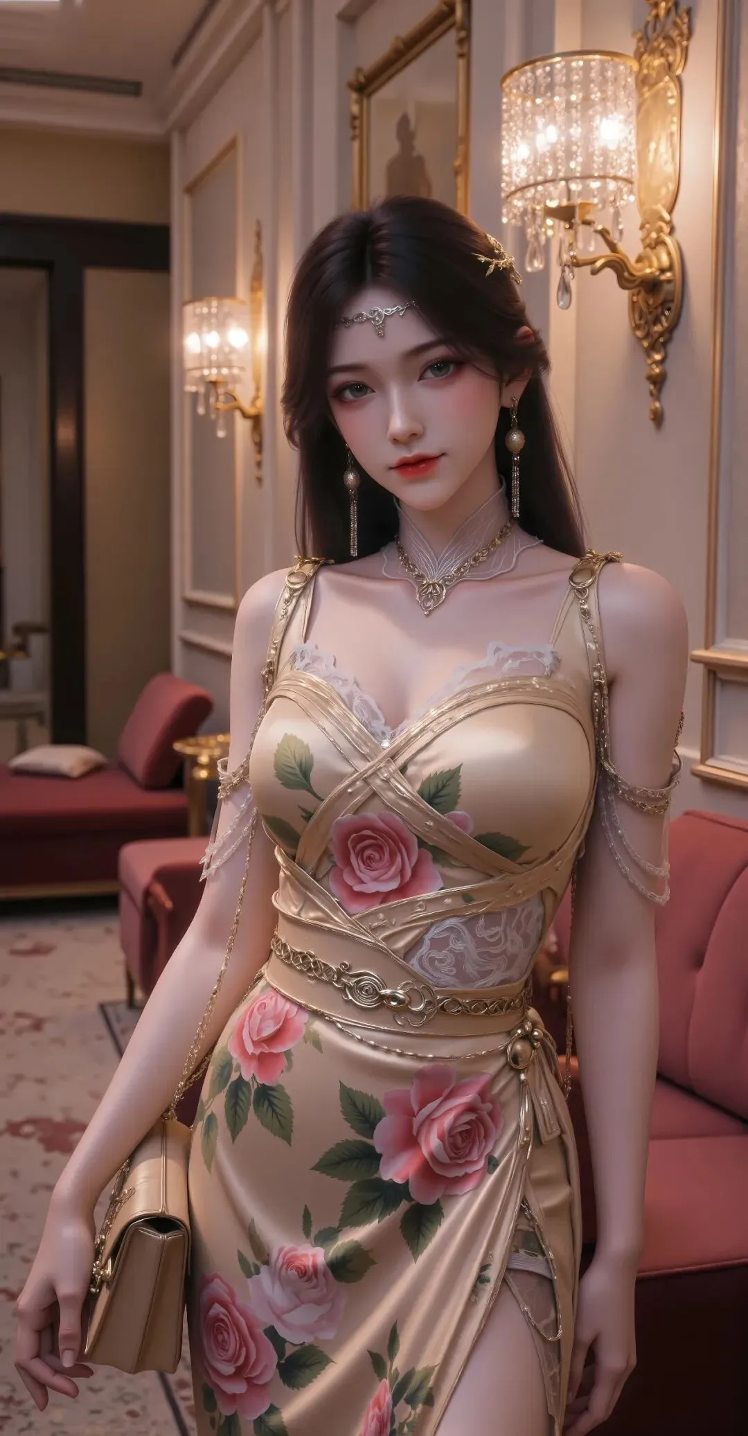 金瓶儿的容颜,是“媚”与“锋”的完美碰撞,是“风情”与“沧桑”的矛盾统一。她天生便带着合欢派修士特有的媚骨,眉眼间的风情无需刻意雕琢,便能轻易勾人心魄,却又在这份媚态之下,藏着历经炼狱的凌厉与沧桑,藏着看透人心的狡黠与疏离。她的美,从不廉价,不刻意讨好,也不肆意展露,而是源于血色过往的淬炼,源于生存智慧的沉淀,每一个眼神、每一个神态,都有着致命的吸引力,却又让人不敢轻易靠近,恰如带毒的蔷薇,美丽而危险,让人沉醉又忌惮。
