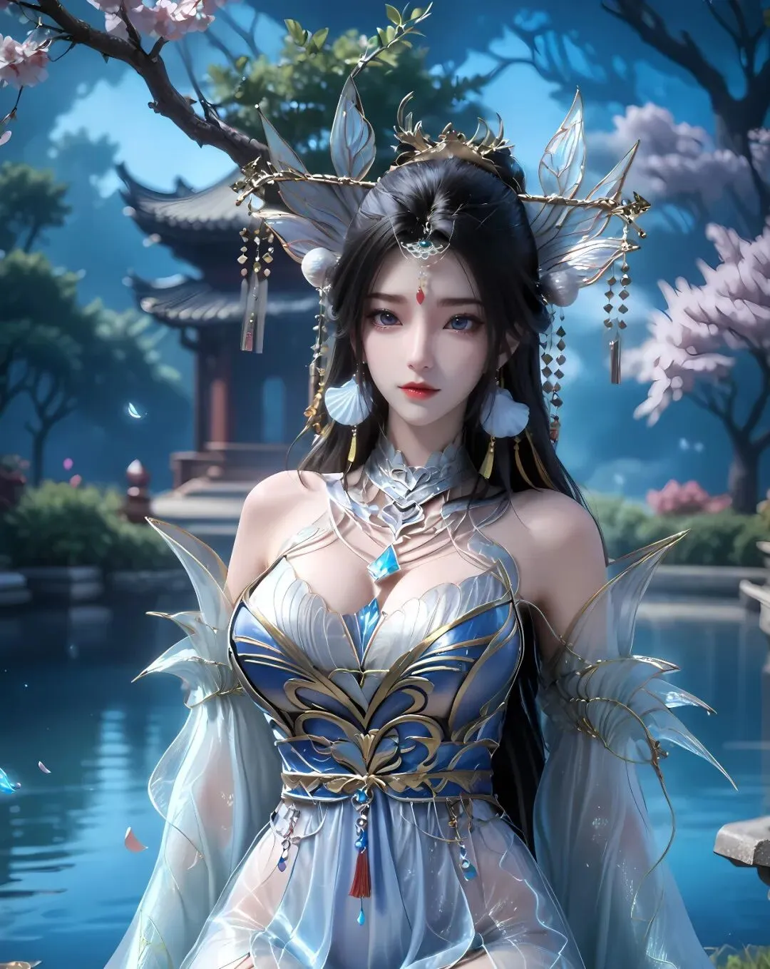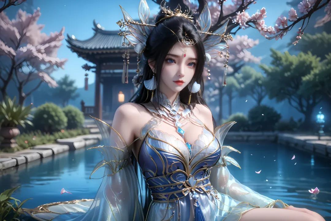 道袍的领口是经典的交领设计,领口与袖口边缘绣着繁复的白色莲纹,针脚细密,栩栩如生,莲花形态各异,有的含苞待放,有的肆意绽放,既彰显了她修炼的莲系仙法,又添了几分仙雅;袖口是宽大的广袖设计,便于施展仙法,袖口内侧缝着暗袋,可存放一枚小巧的剑符,便于应急防身,袖口边缘缀着细小的青色流苏,行走时,流苏轻摇,与衣袂相映成趣,添了几分灵动。衣身宽松却不拖沓,兼顾优雅与实用性,衣身两侧有隐形的灵气通道,能让天地灵气自由流转,滋养仙体;裙摆层叠展开,似莲瓣绽放般华丽,裙摆下摆绣着一圈细小的剑形暗纹,与她的佩剑相呼应,既不繁琐,又添几分锋芒,行走时,裙摆飘动,剑形暗纹亮起淡淡的青光,尽显强者的气场。