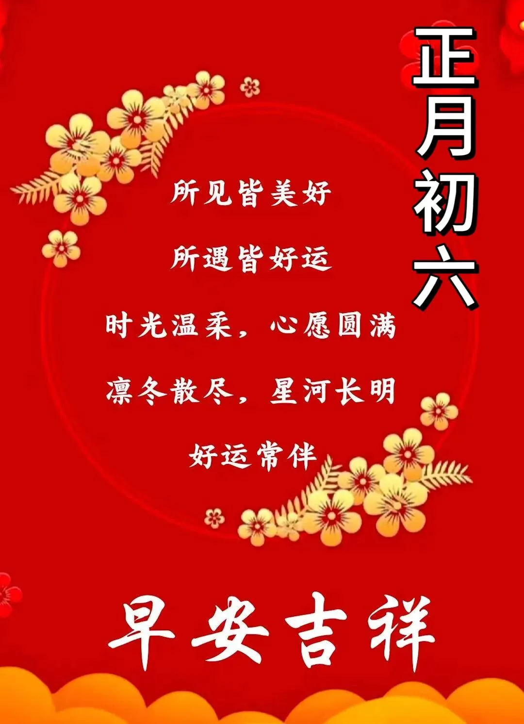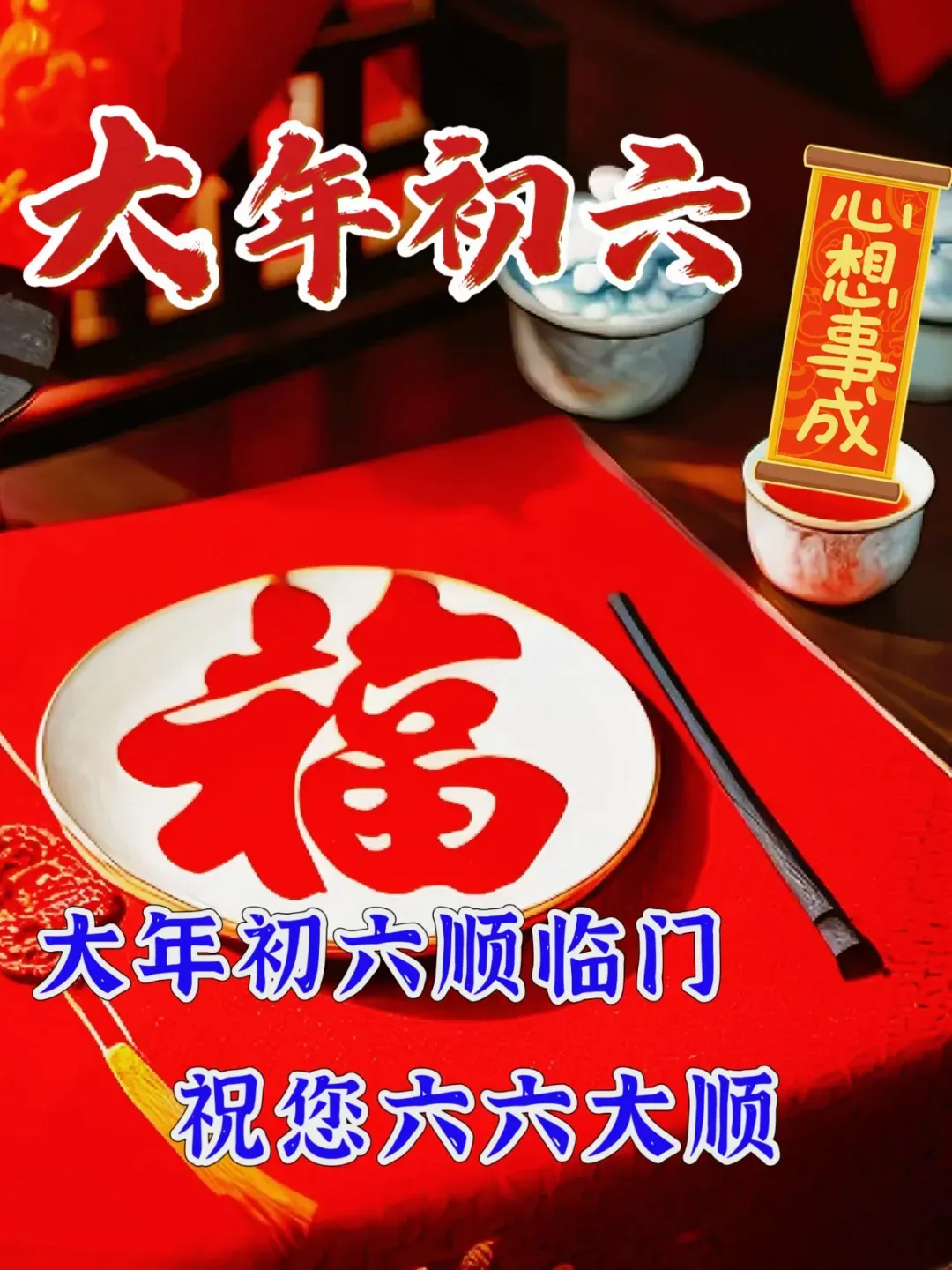 2月22日大年初六祝福语图片,正月初六,六六大顺祝福语图片!