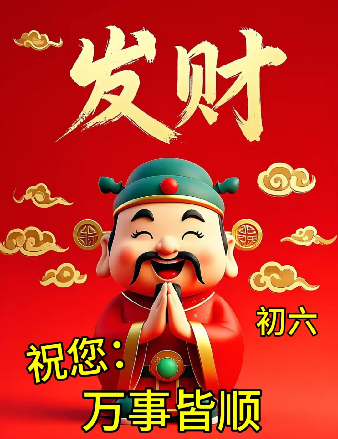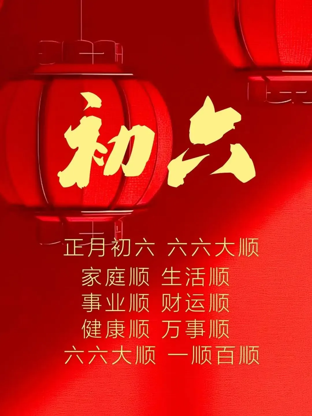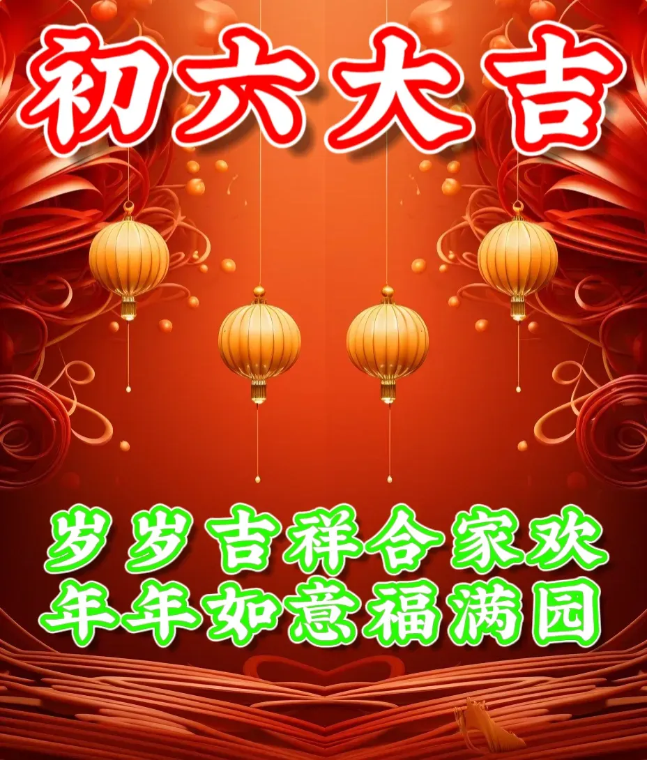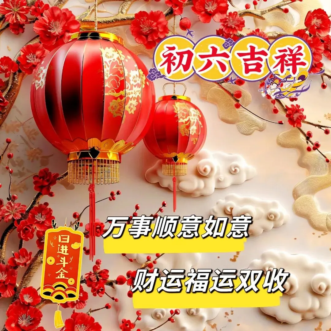 大年初六🧨:祝你六六大顺,吉祥如意🎉,生活顺着你,事业顺着你,万事顺着你,2026,愿你事事顺利🙌,开开心心😄,和和美美👨‍👩‍👧‍👦!