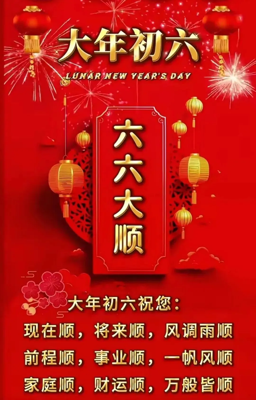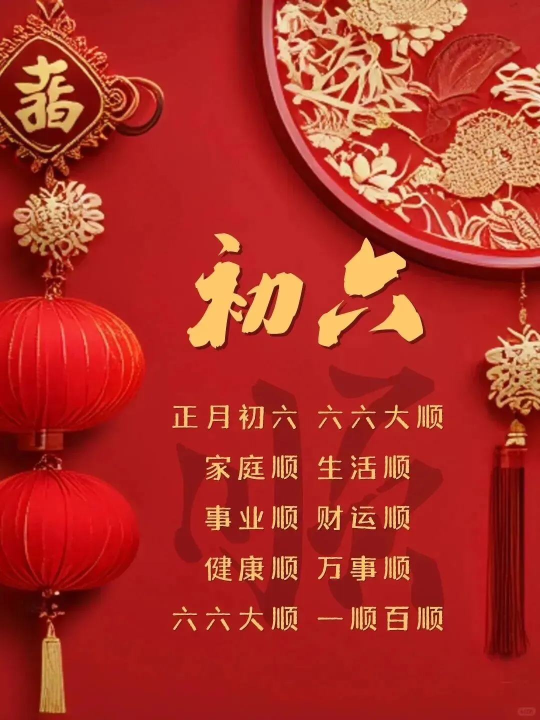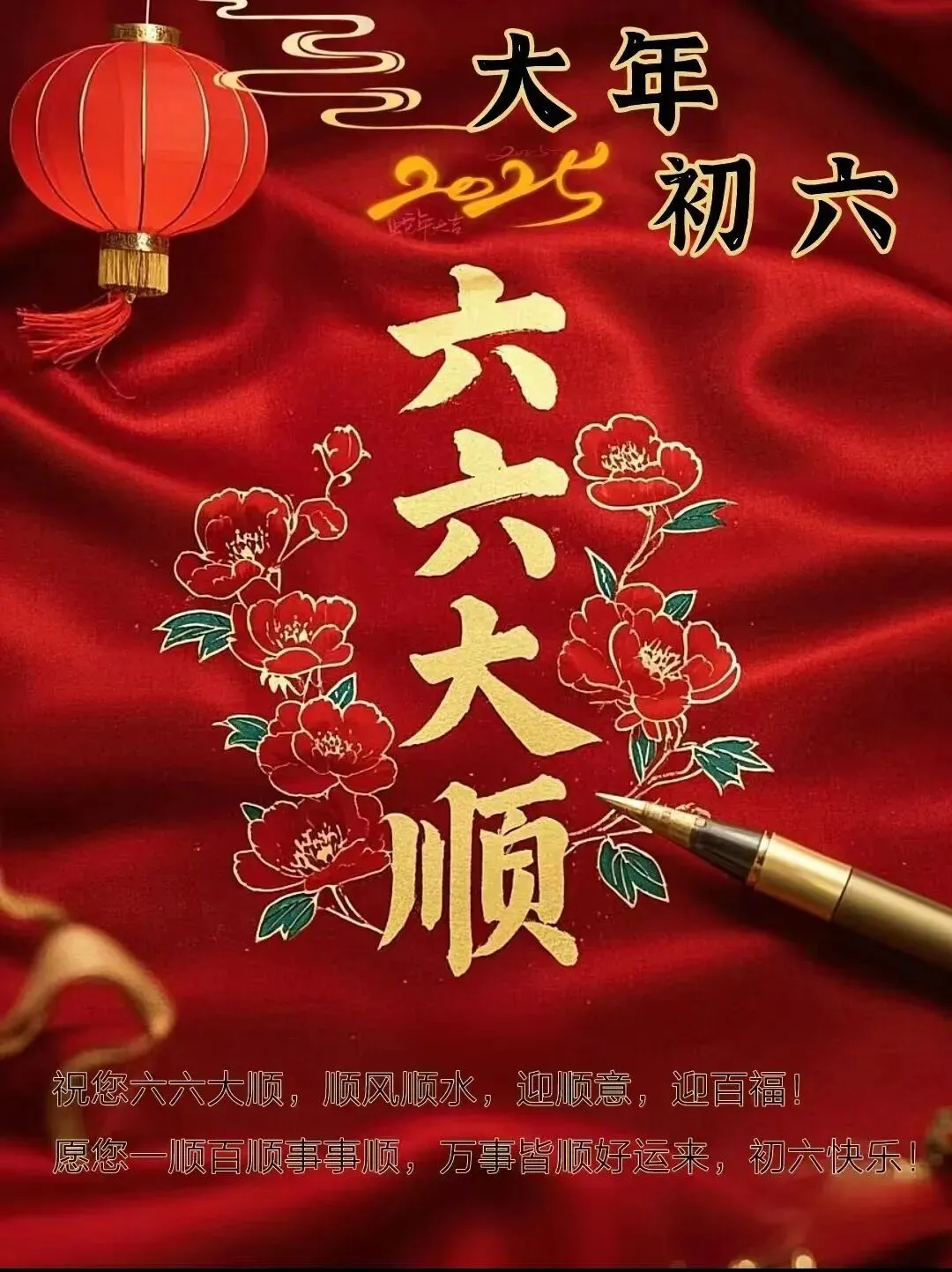 2026年2月22日,大年初六祝福图片图片,祝大家顺心顺意,一顺百顺,事事皆大顺!