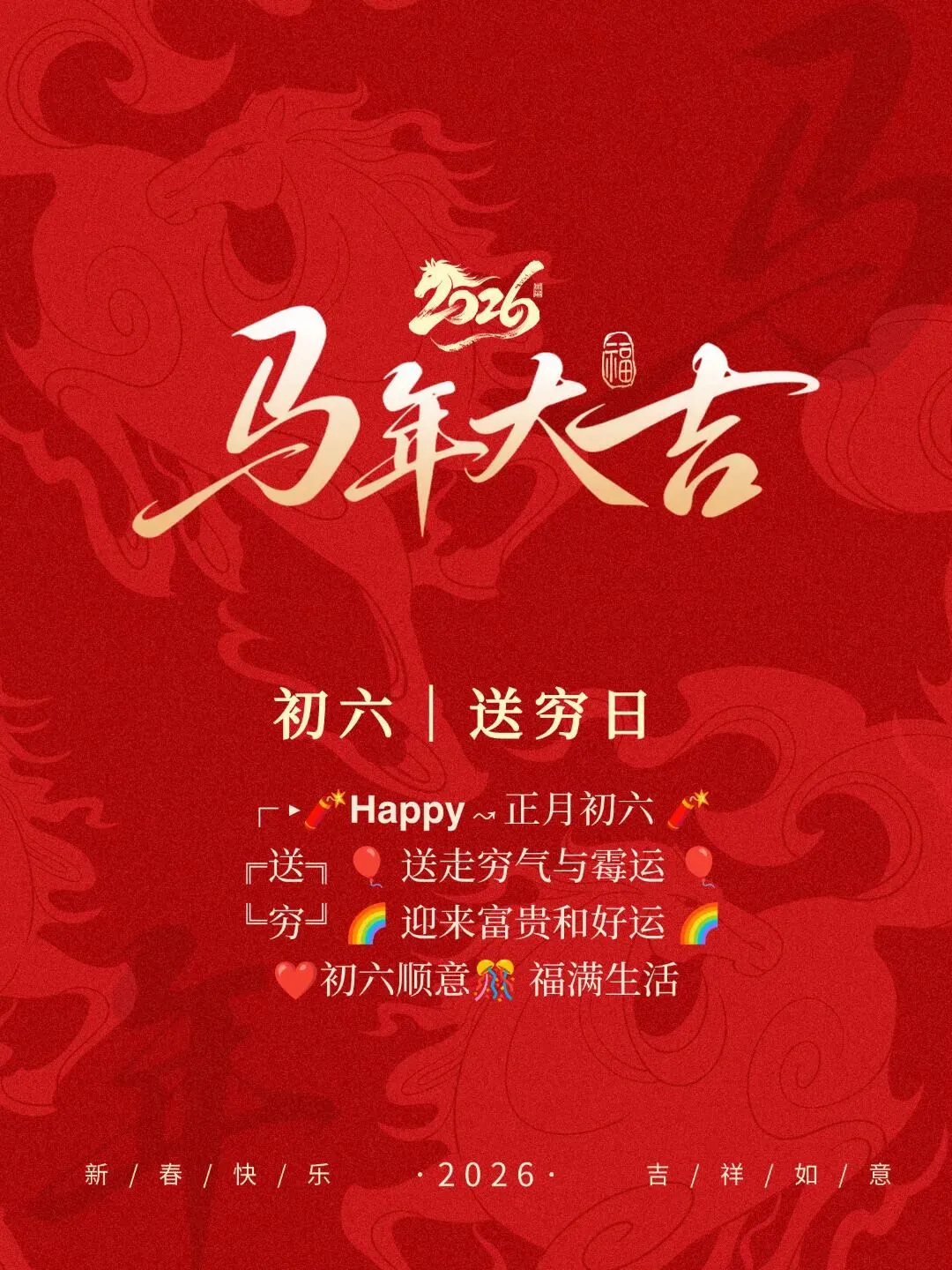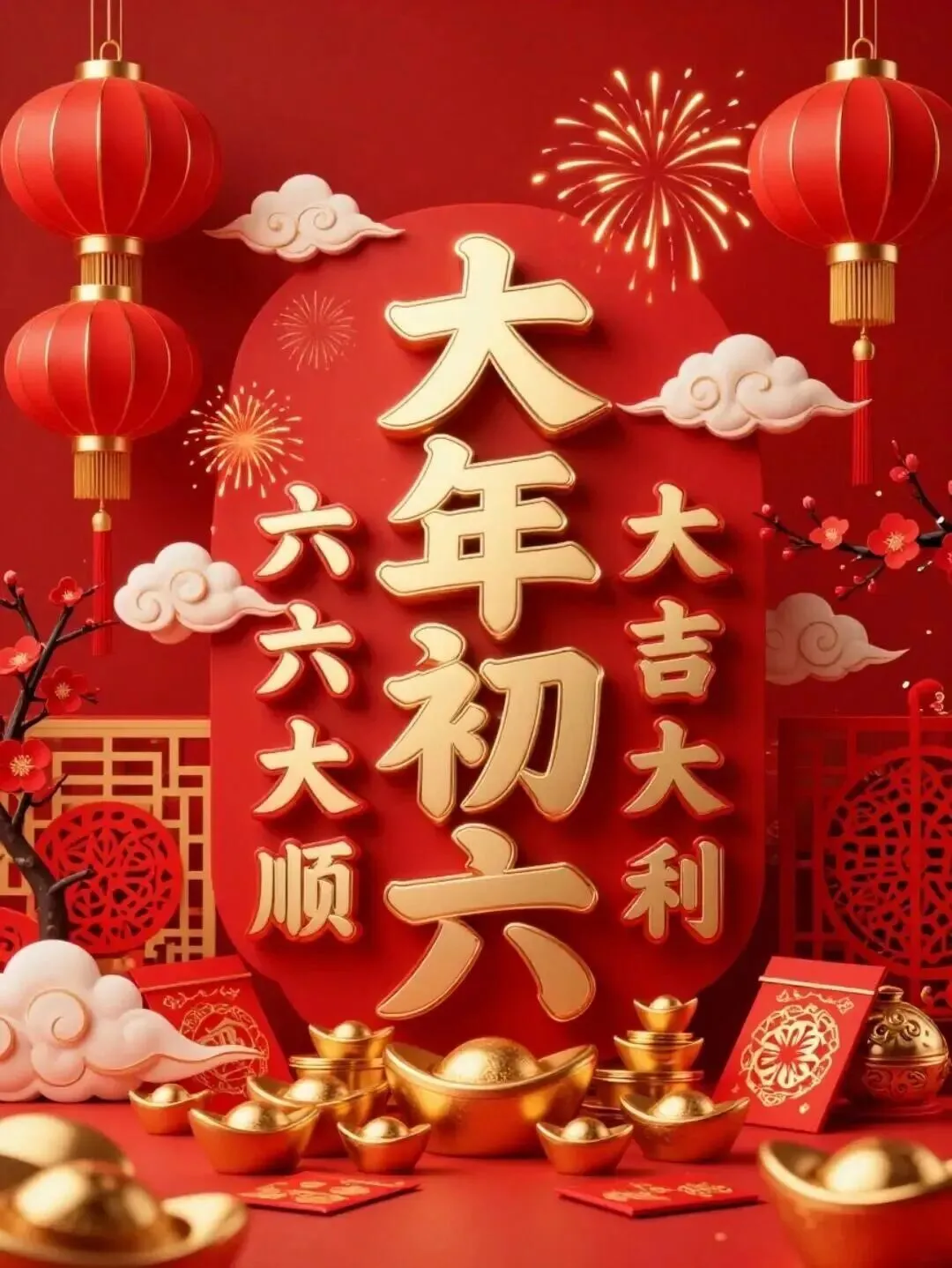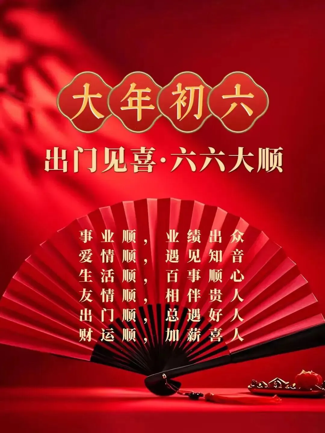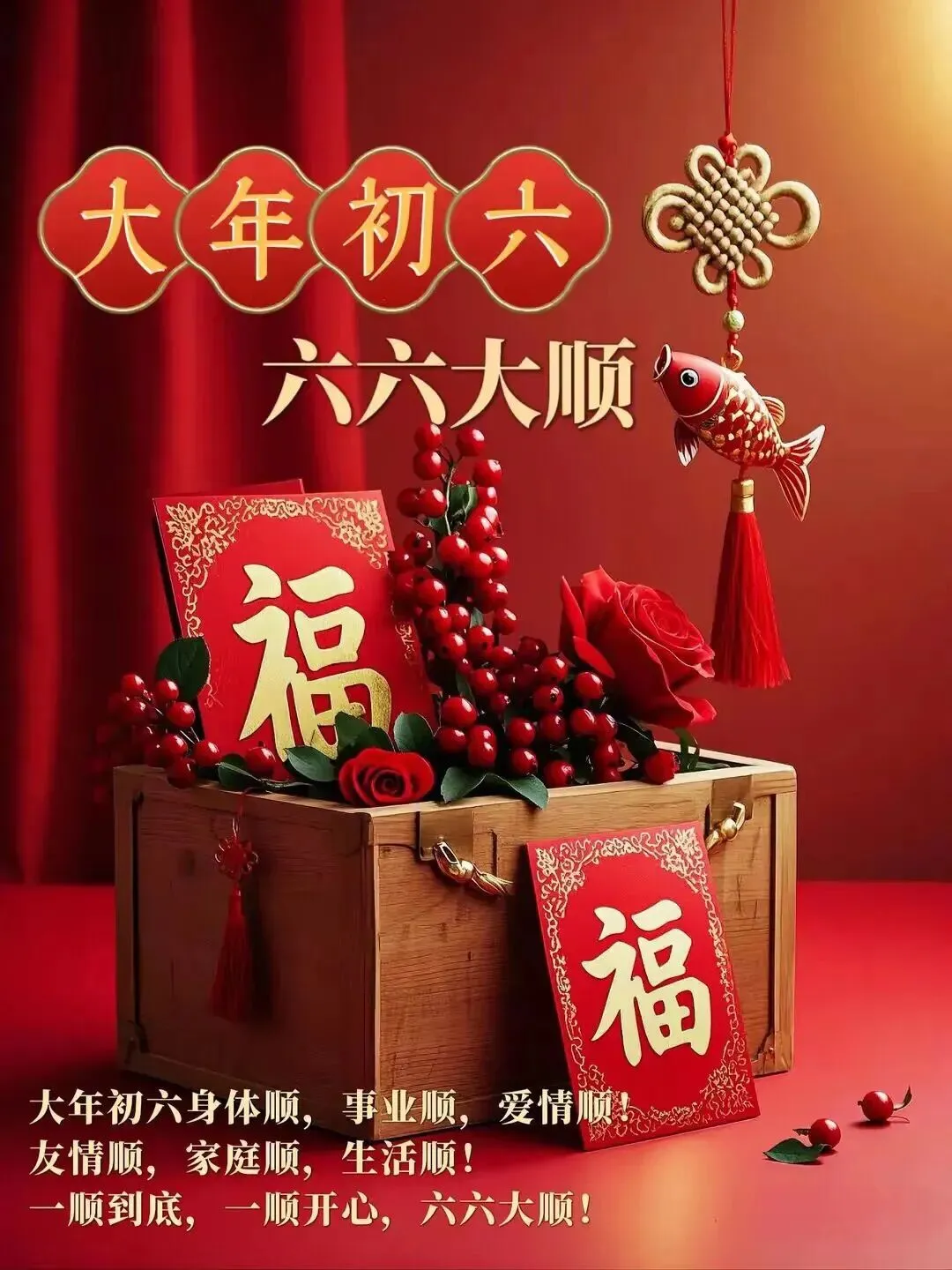 2026年2月22日,大年初六祝福图片图片,祝大家顺心顺意,一顺百顺,事事皆大顺!