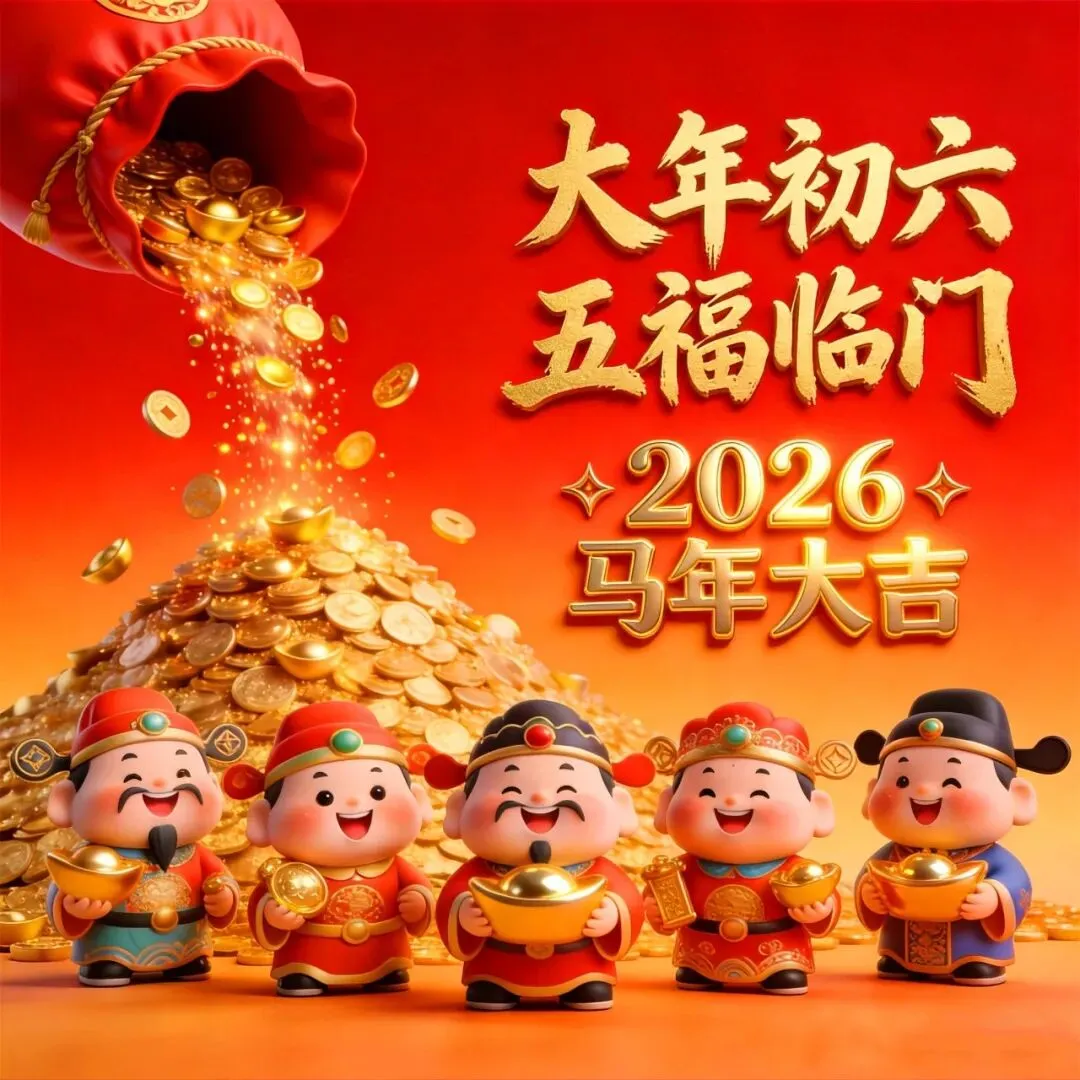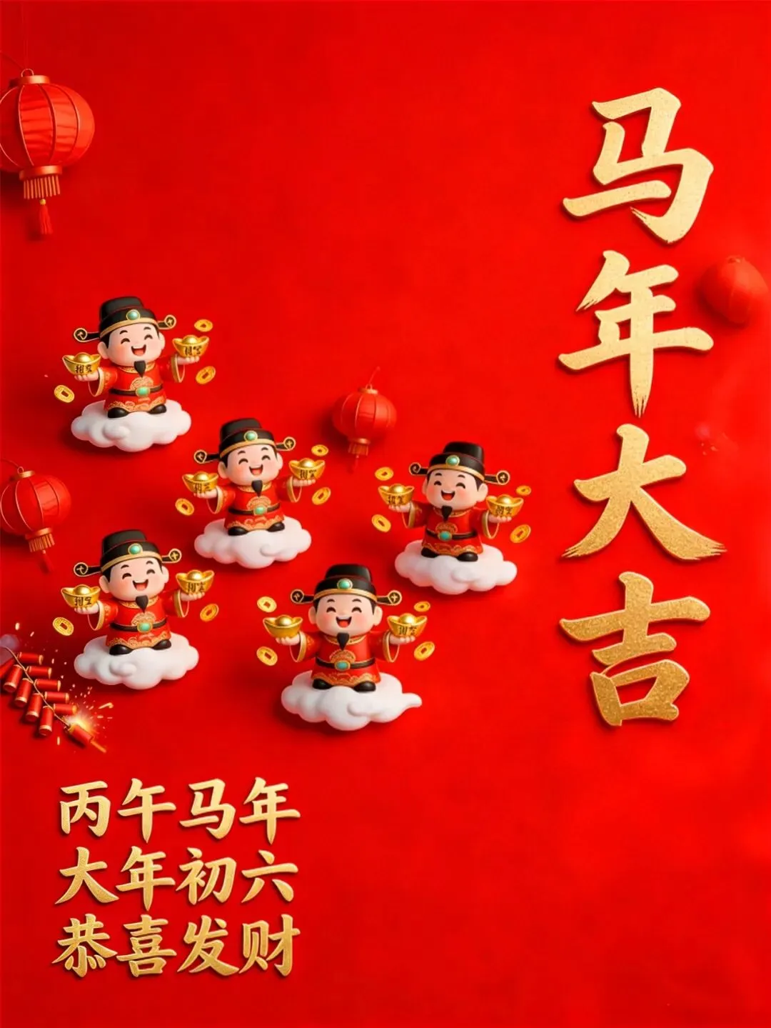 年初六,六六大顺,迎那个努力向上的自己。愿你以梦为马,不慌不忙;接财纳福,步履铿锵,2026,我们一起旺!迎财神,马年大吉!