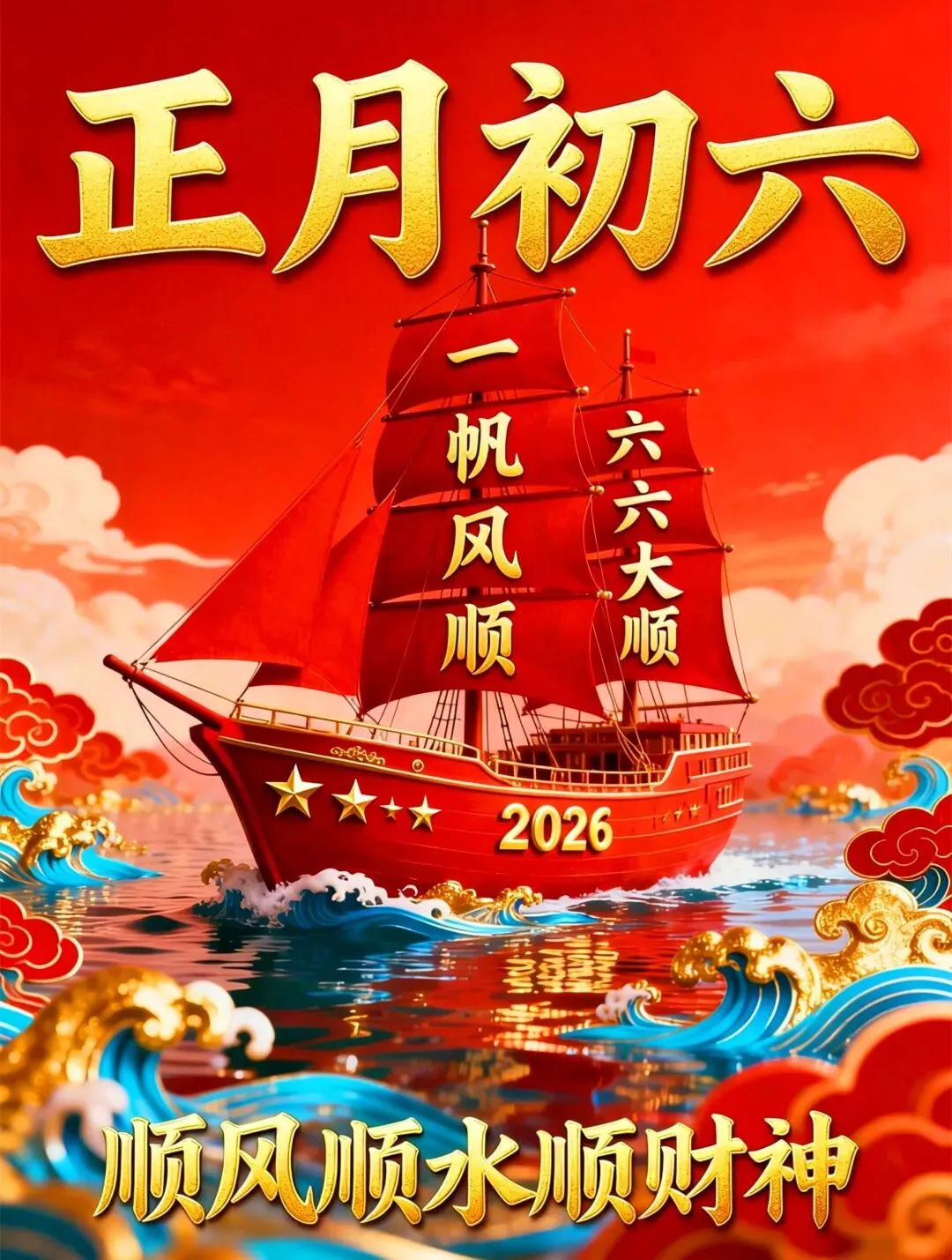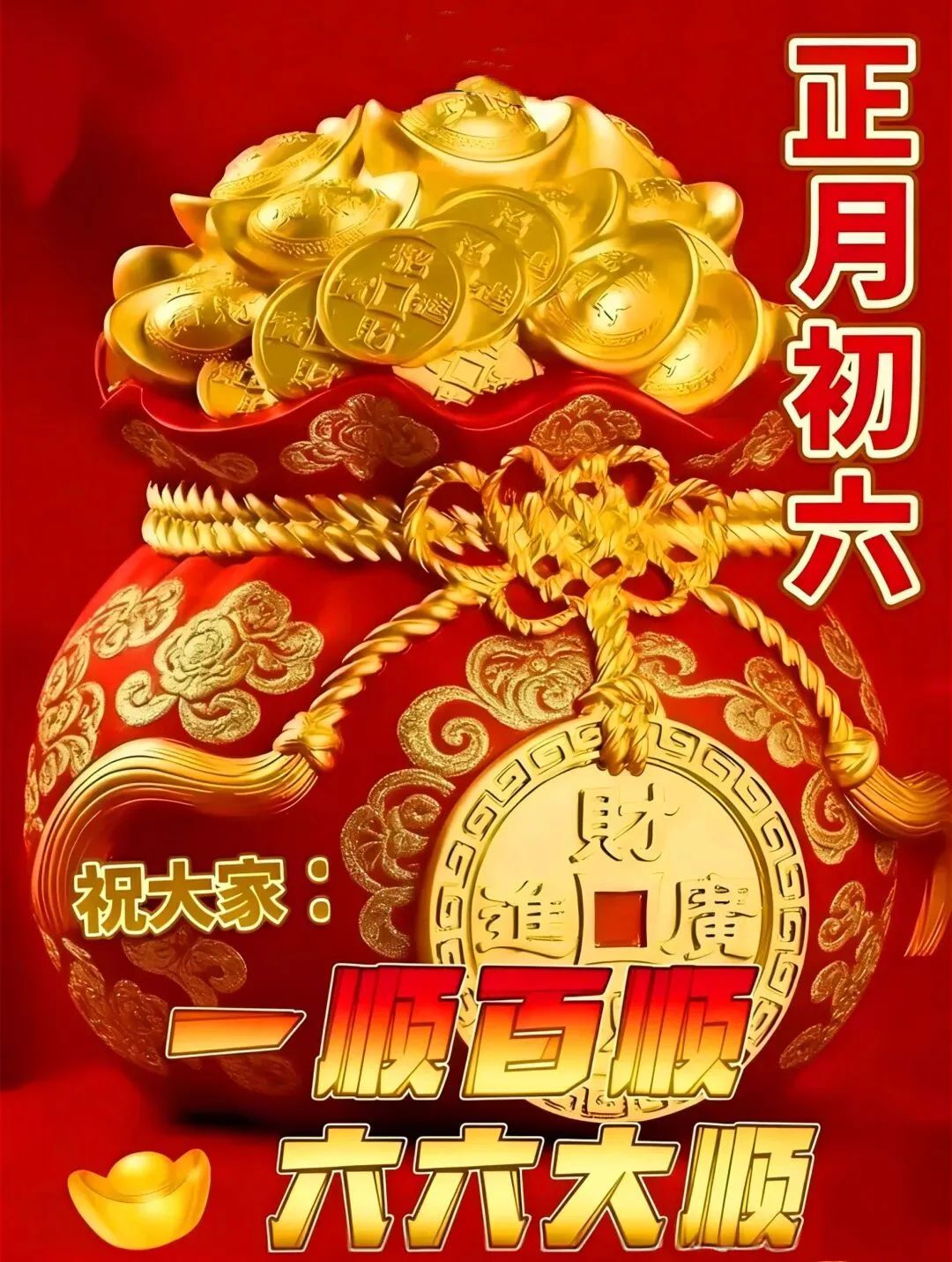 大年初六,最顺的日子,送上最顺的祝福,祝您2026丙午马年一帆风顺,好运连连,福气满满,天天开心,事事顺心,总之一顺百顺啥都顺!