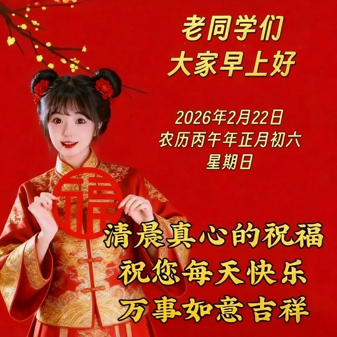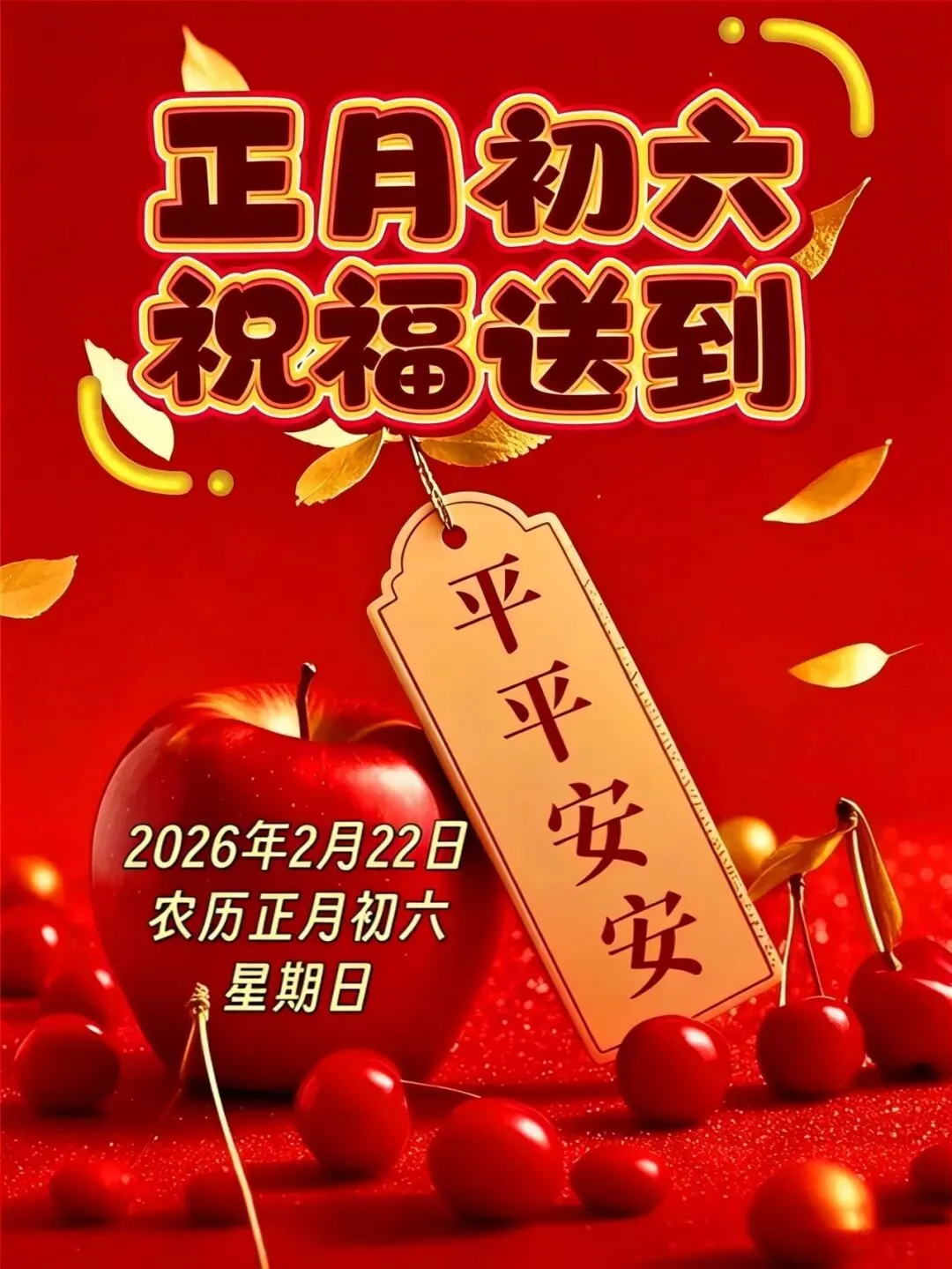 2月22日-正月初六漂亮图片祝福语+大年初六,祝所有屏幕前的朋友,万事如意家庭美满,身体安康开开心心!