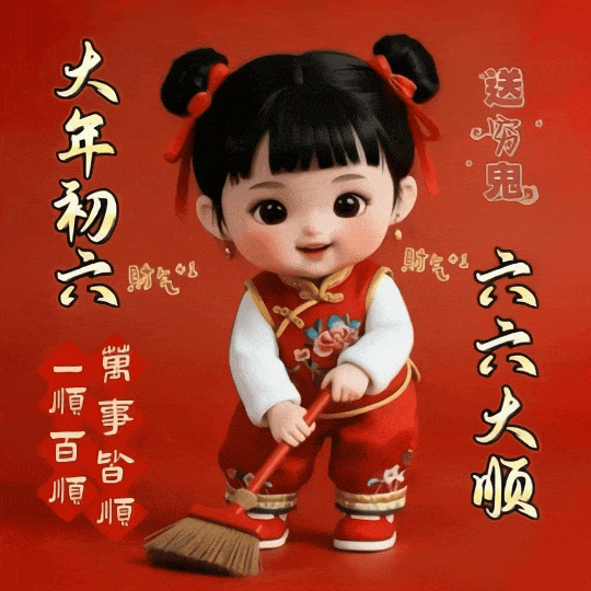 大年初六,六六大顺!一祝财运顺,二祝事业顺,三祝心情顺,四祝家庭顺,五祝健康顺,六祝万事顺。愿2026健康是你,好运是你,暴富发财也是你。春节快乐!