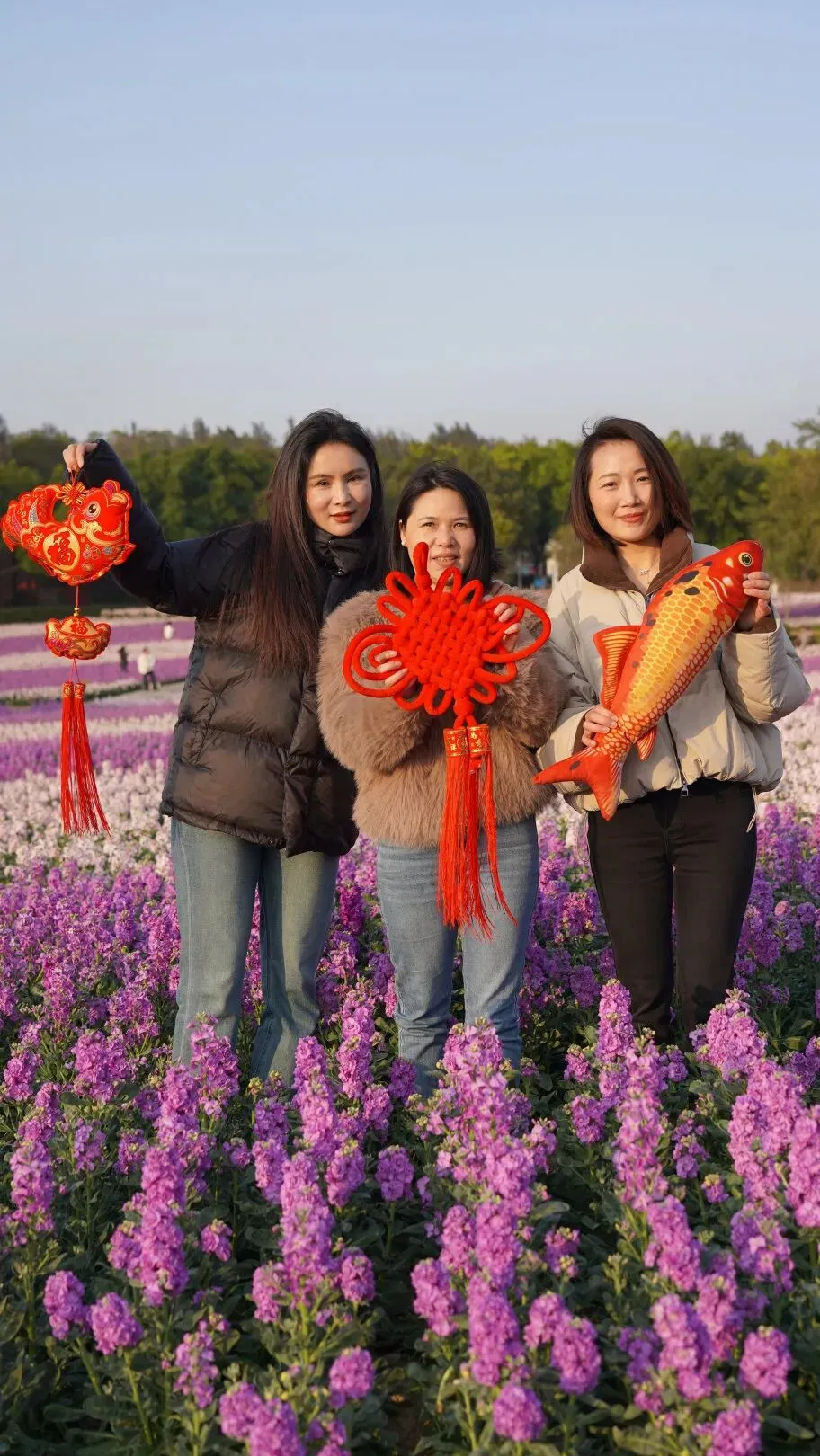 游客们手持着新春元素