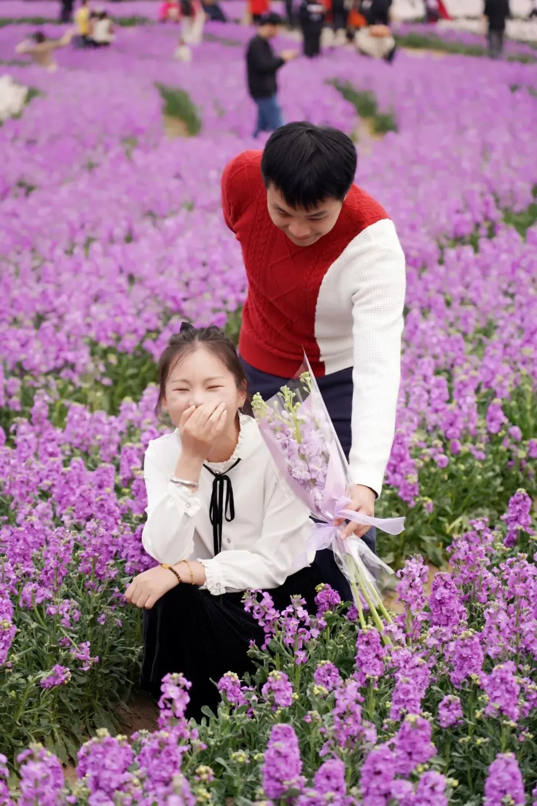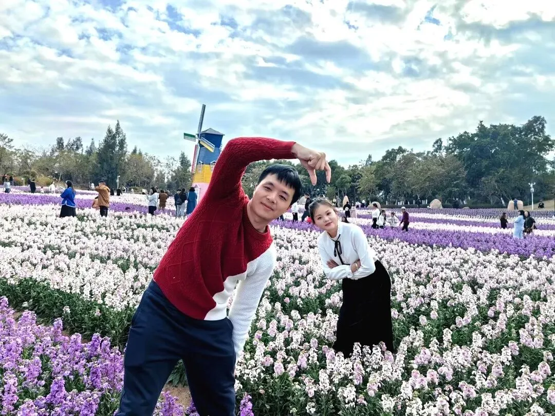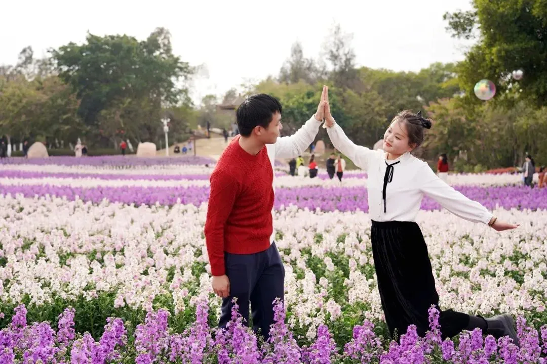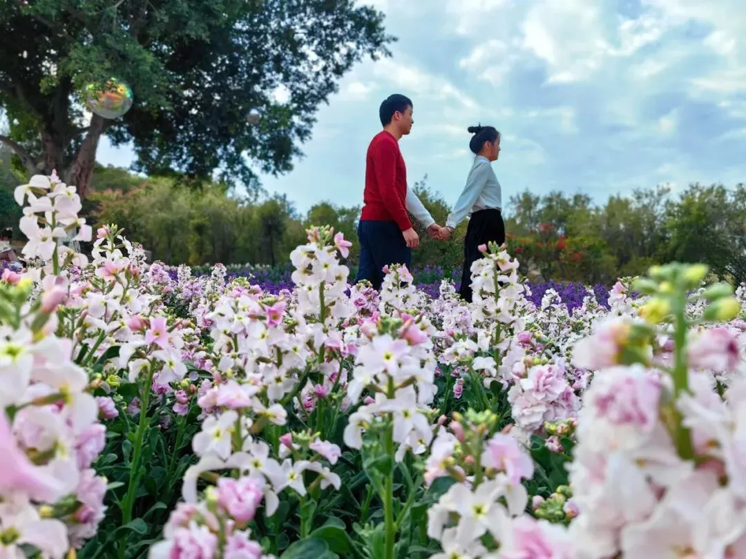 他们携手漫步在花海间