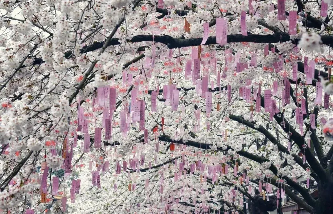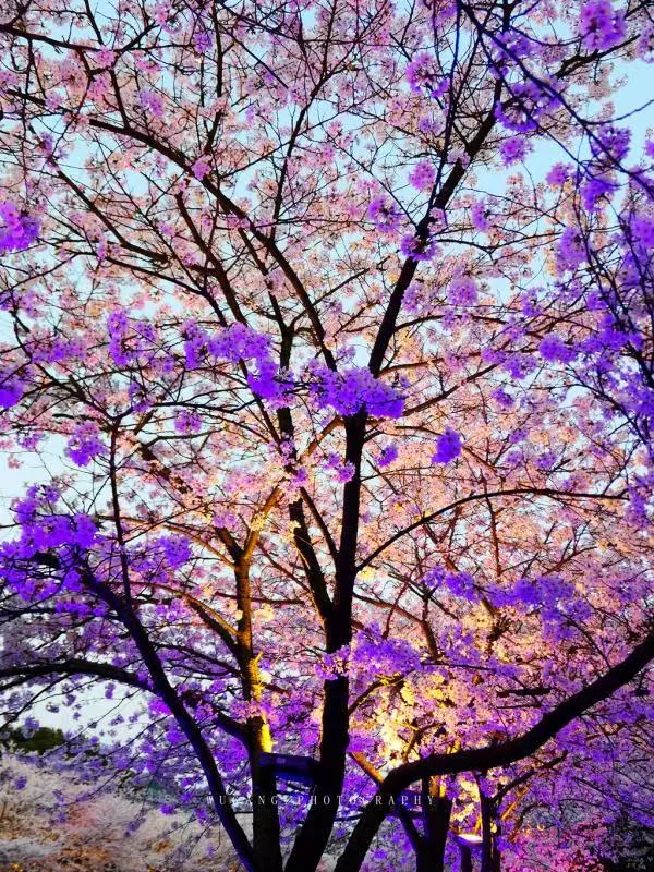 赏樱季美丽的,还有夜樱。夜樱在璀璨灯光的映衬下,犹如一条斑斓的河。而你仿佛置身于一个迷离的色彩世界,沉醉在这场震撼辉煌的视觉盛宴中,难以醒来。