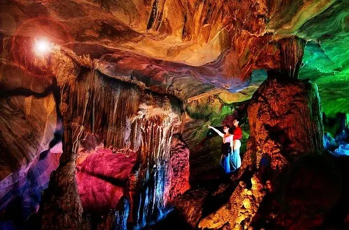 12:30 乘车前【龙崆洞风景区】:龙崆洞是国家AAAA级风景名胜区。景区内群山环抱、峰峦叠翠、景色秀丽,形成了3亿年前的龙崆古洞,洞内空间宽敞,有8个大厅,16个支洞,深达3.3公里,5.4万平方米,分上、中、下三层,层层叠叠、洞中有山、山中有洞、洞中有水、水中有洞、钟乳交错,溪泉汩汩,洞内奇异绚丽的石象、石蛇、石蛙、石钟等景观,千姿百态、玲珑剔透,扑朔迷离,是个天然大迷宫。