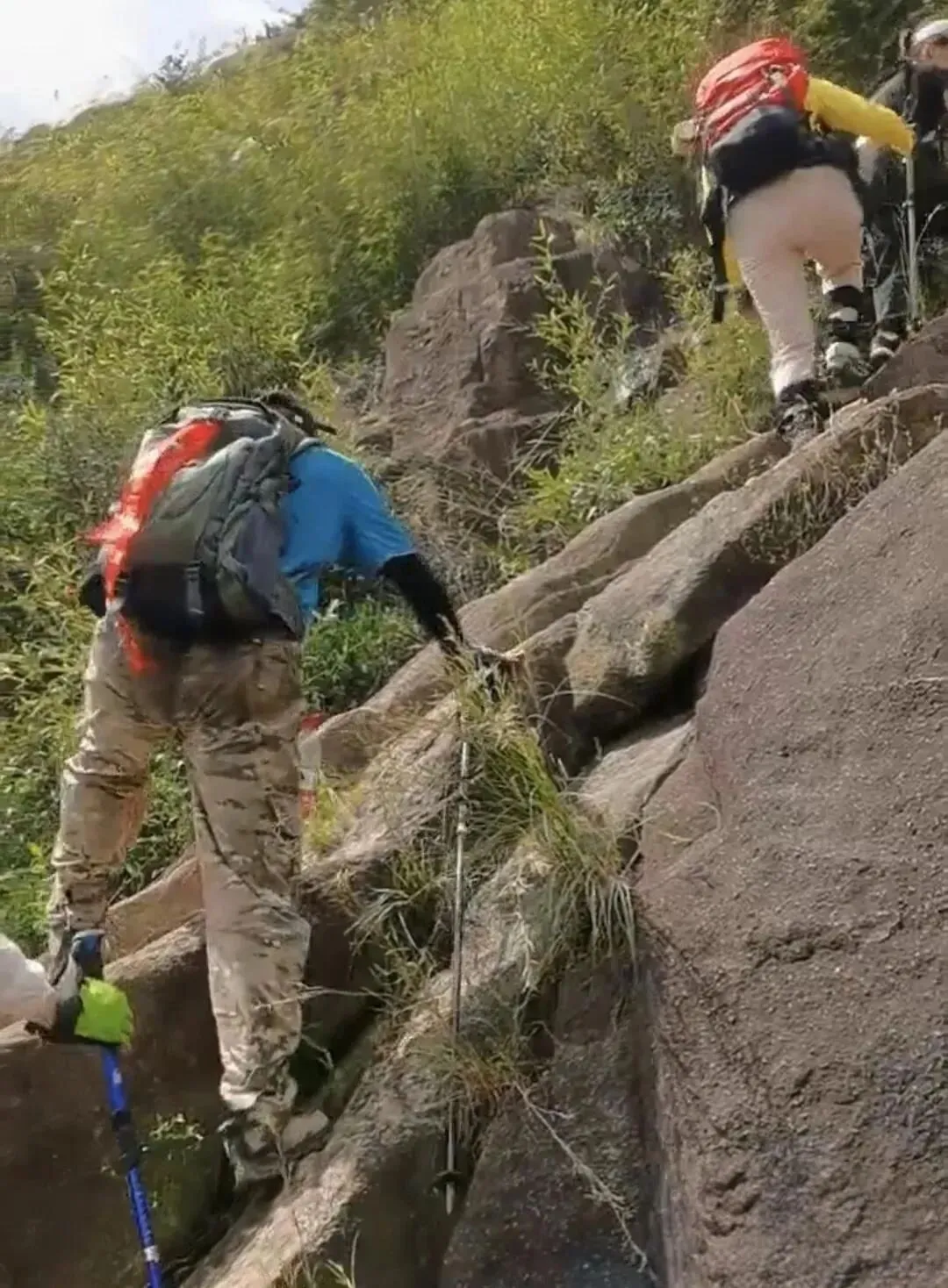 那天,在近30℃的高温下,手脚并用地攀爬嶙峋巨岩,汗水浸透衣裳,确实是一场对体能的“魔鬼”考验。而此行最震撼的一幕,发生在接近顶峰的石阶上。