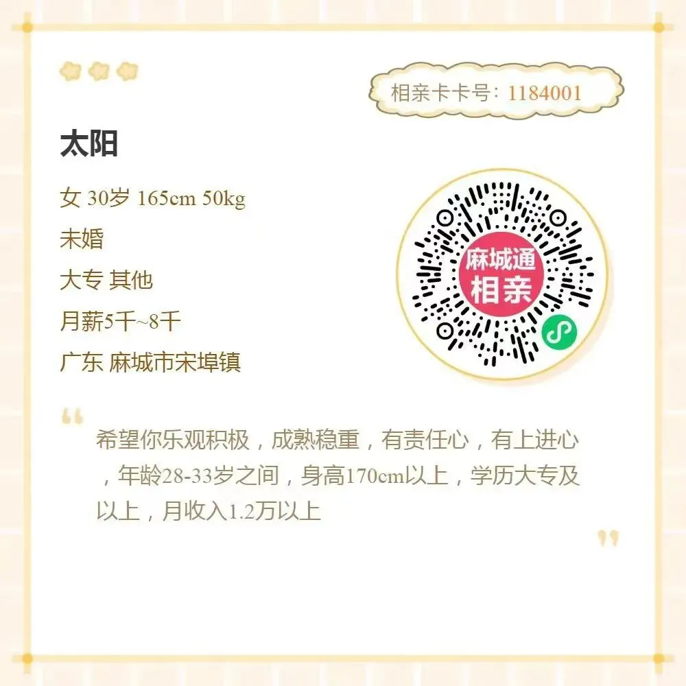 相亲ID:1184001