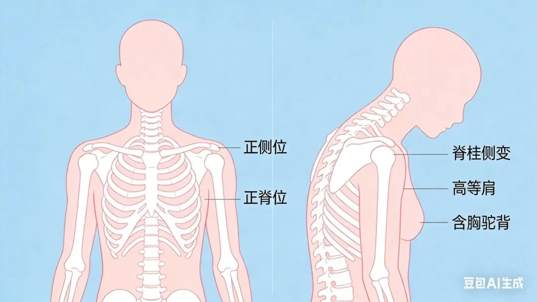 长期肌肉无力、姿势不良,会导致脊柱侧弯、高低肩、含胸驼背。