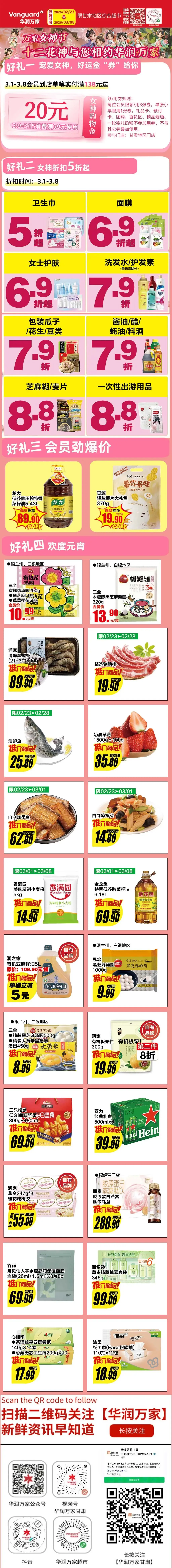 当前位置:首页>美女资讯>华润万家】元宵节&女神节,3.1-3.8会员到店消费满138元送20元购物金....