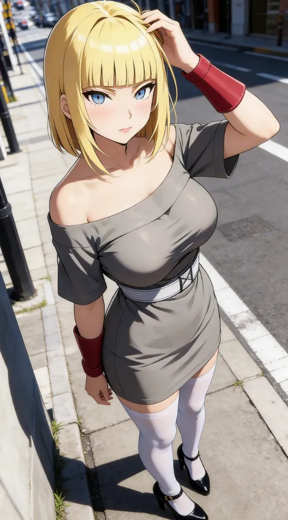我连忙解释自己的来历,她半信半疑地打量着我,最终还是带我去了村里的临时住所。她的灰色露肩连衣裙衬得身形纤细,红色护腕和白色过膝袜,让她在干练中多了几分少女感。