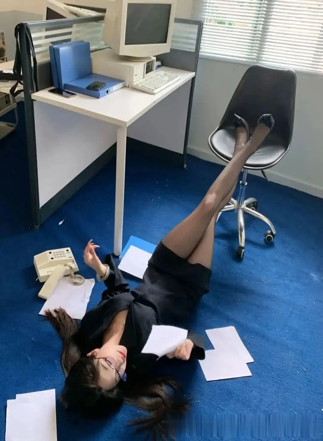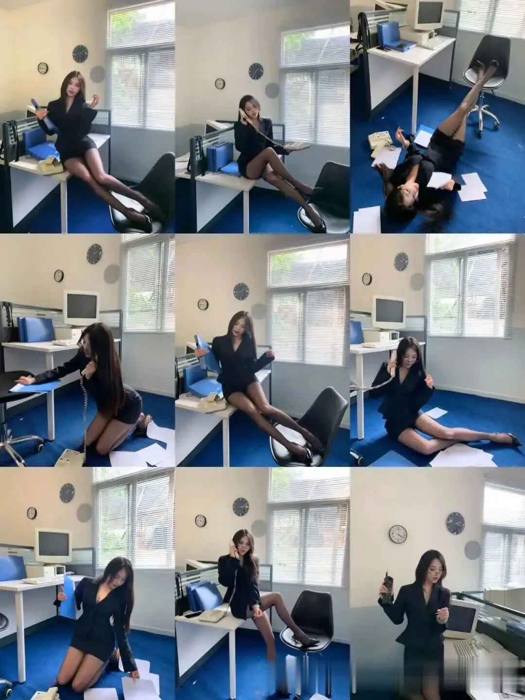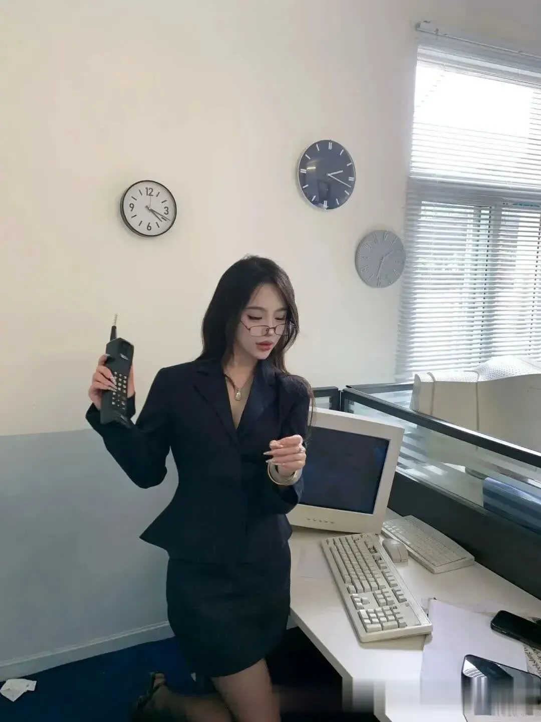 当前位置:首页>美女资讯>美女模特、姐的黑色西装杀才是通勤战袍天花板!文件一甩百叶窗透光黑丝腿绝了~